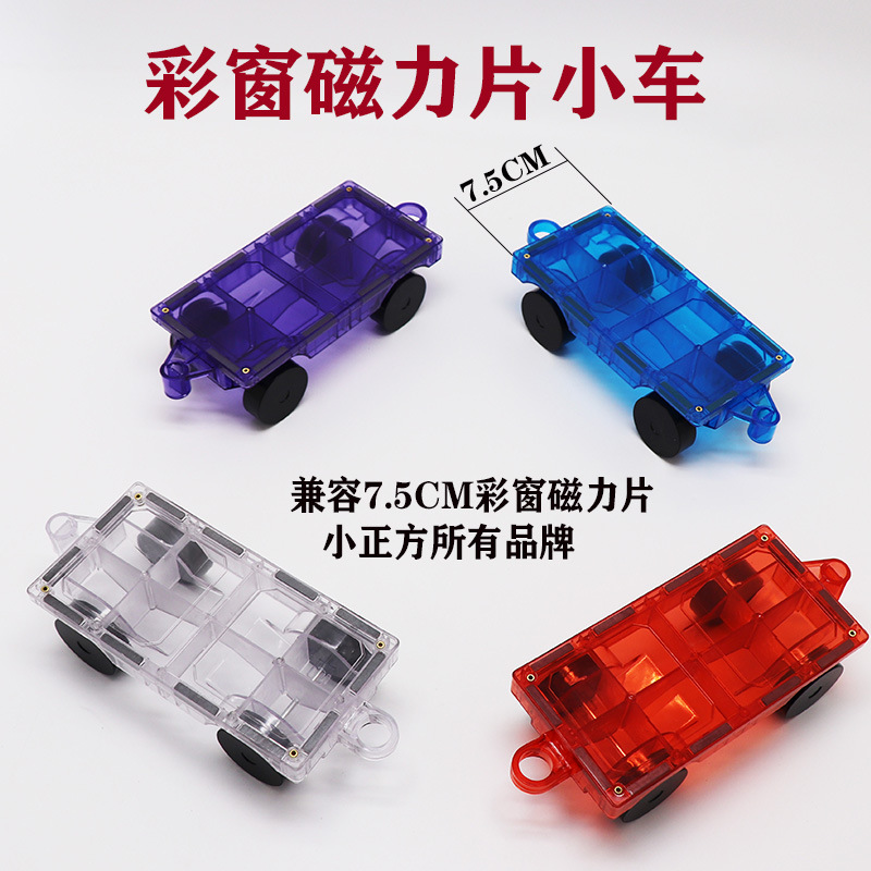 彩窗磁力片磁力小车补充装小车玩具小汽车兼容7.5厘米彩窗片