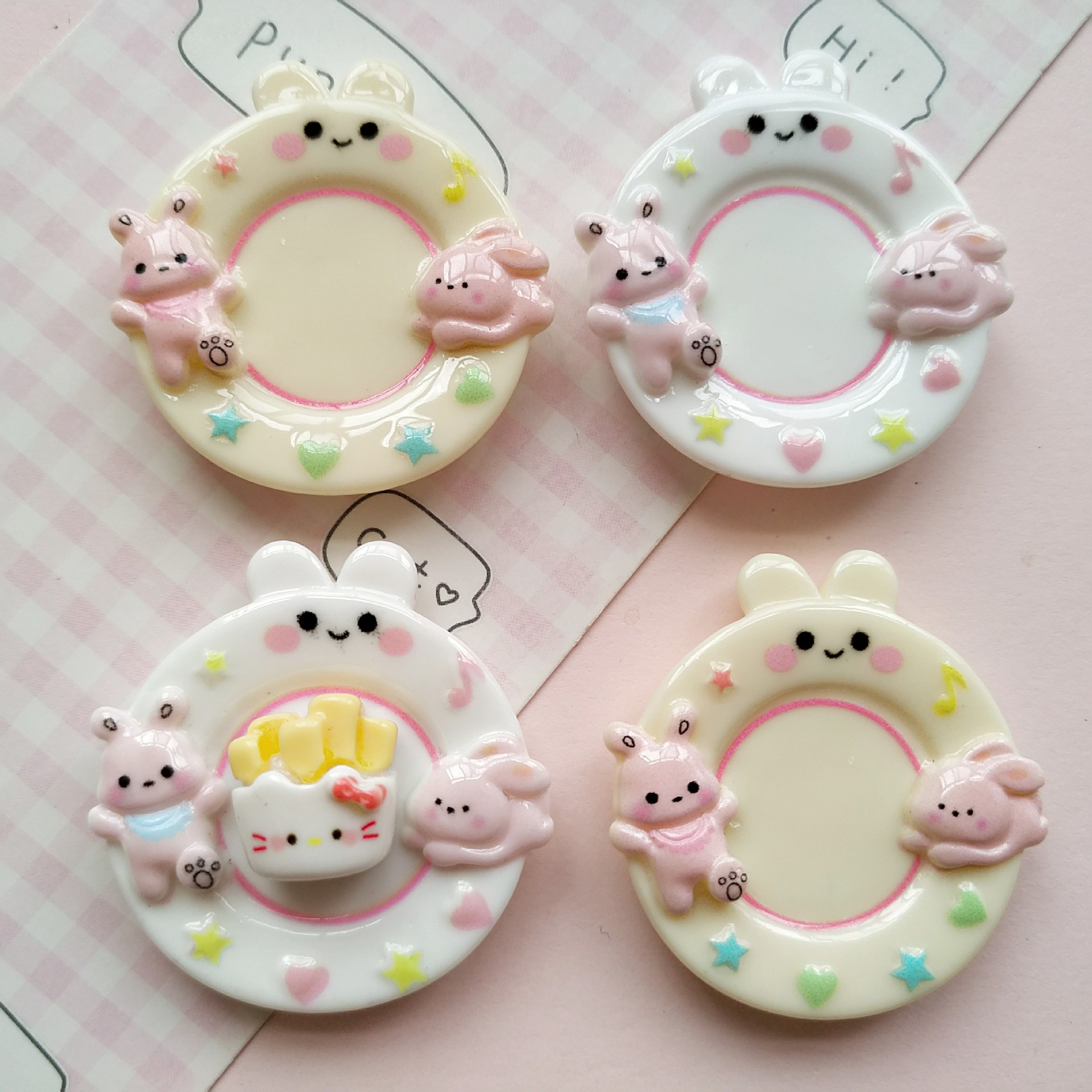 微缩仿真浮雕兔子食玩盘子过家家捏捏装饰圆盘diy奶油胶树脂配件