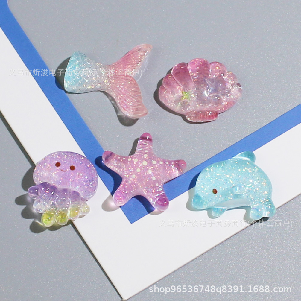 卡通渐变闪粉海洋鱼尾树脂饰品配件手工diy奶油胶手机壳发夹材料