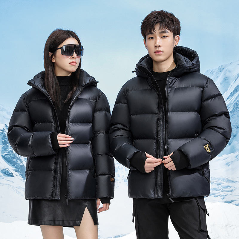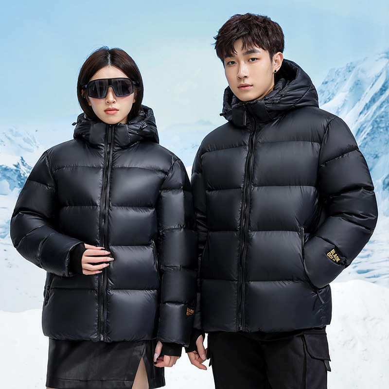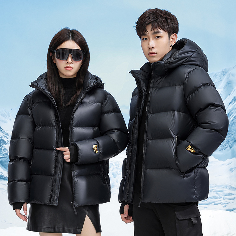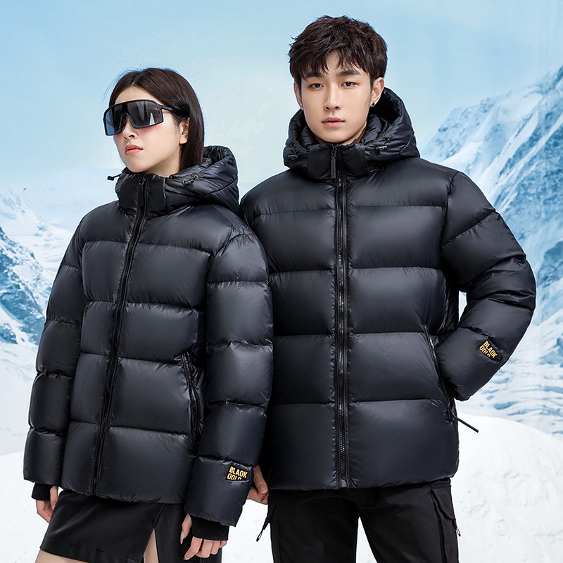 国境を越えた新しい冬のブラックゴールドラベルダウンジャケットショートフード付き男性と女性の同じスタイルのハイエンドダウンジャケットカップルのためのドロップシッピング