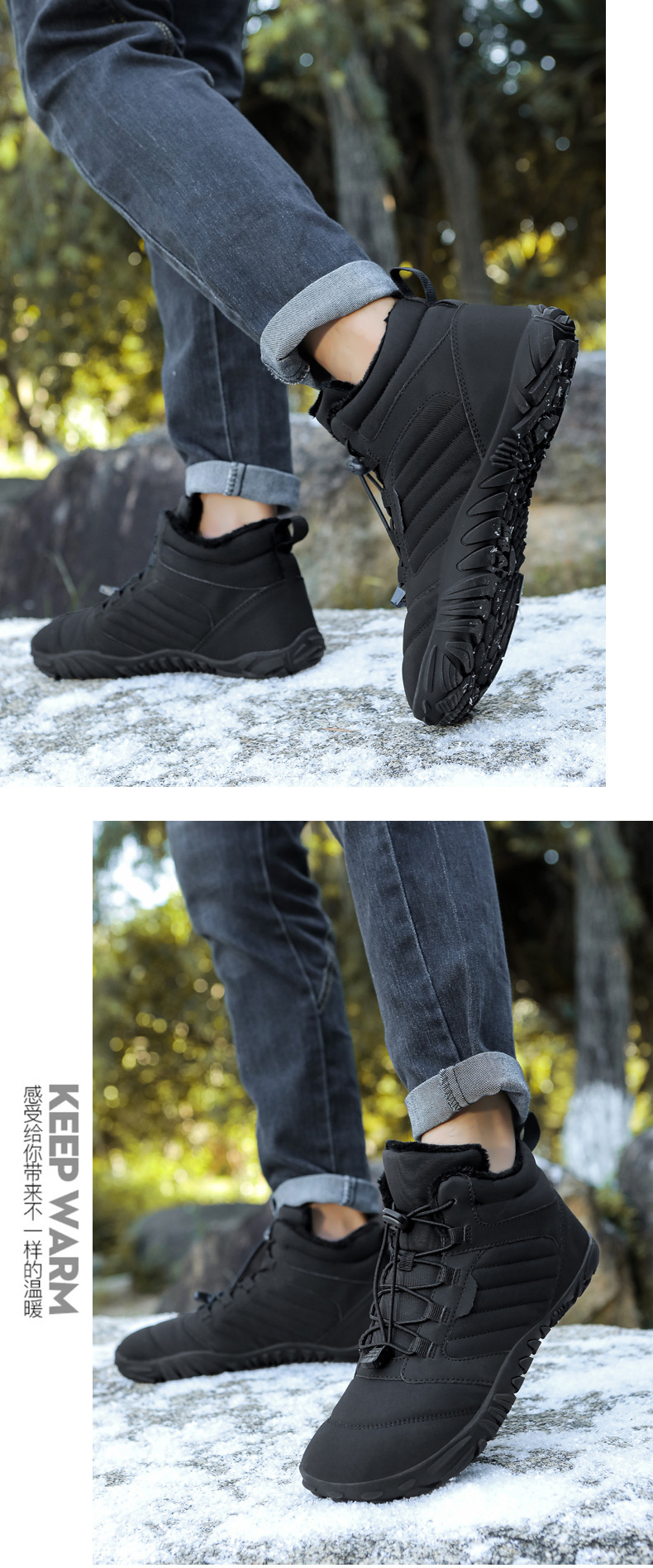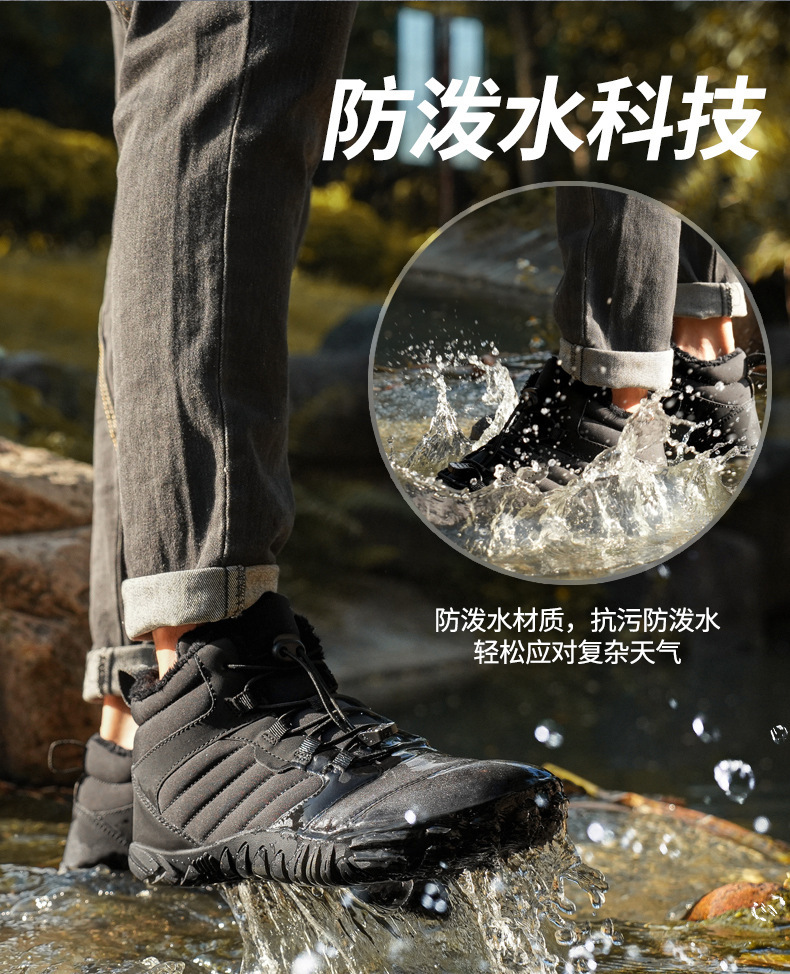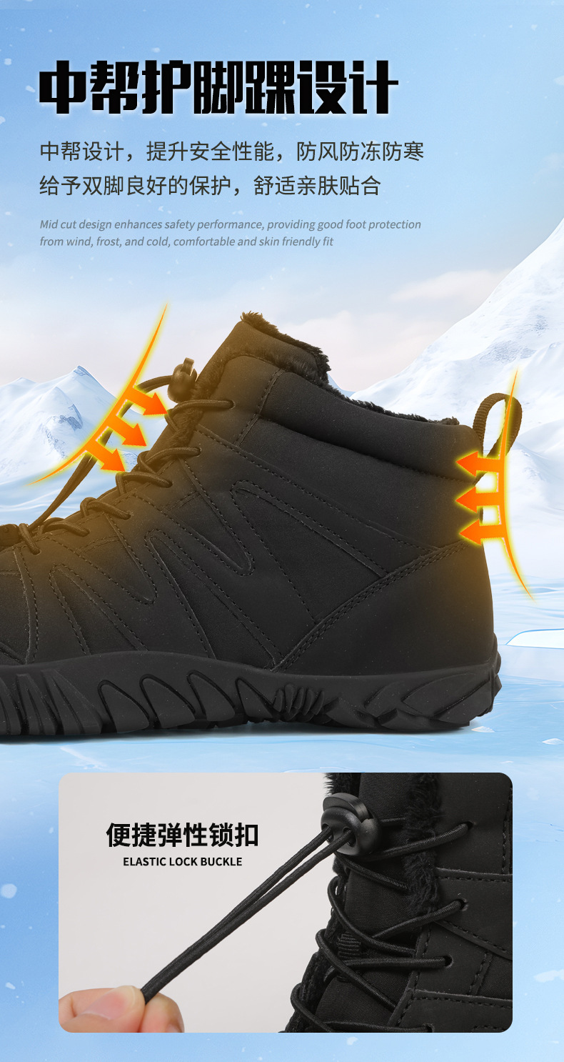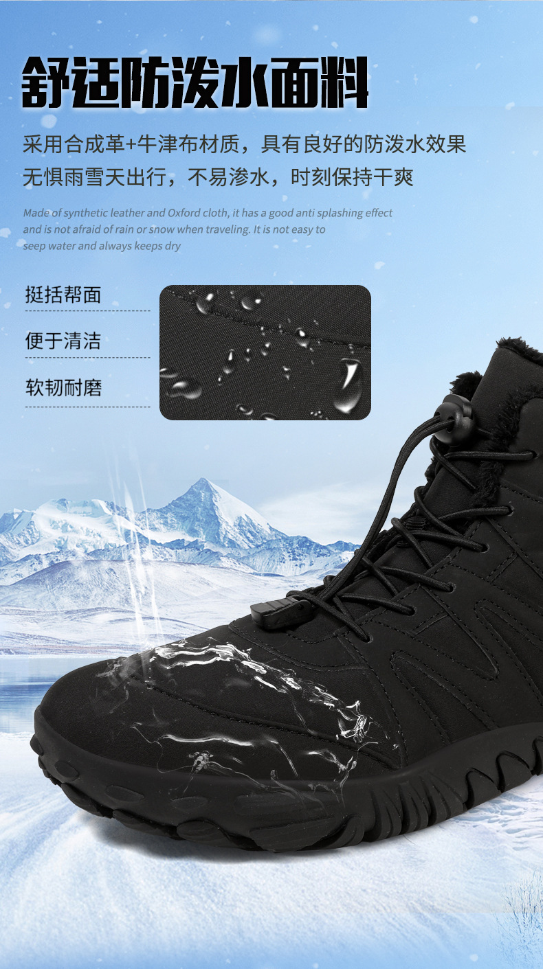 跨境户外休闲加绒保暖鞋加厚登山棉鞋五指大码棉鞋耐磨防滑雪地靴