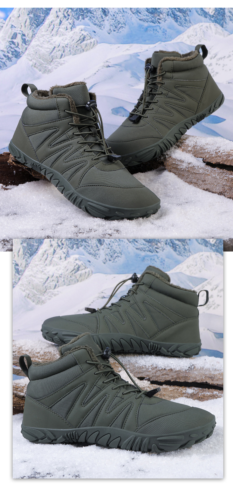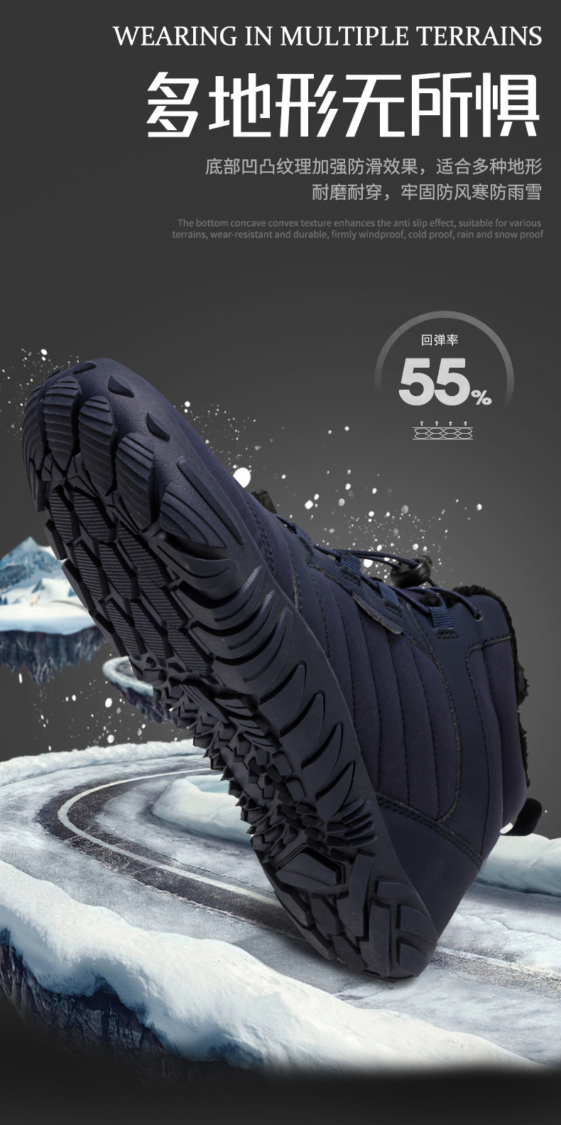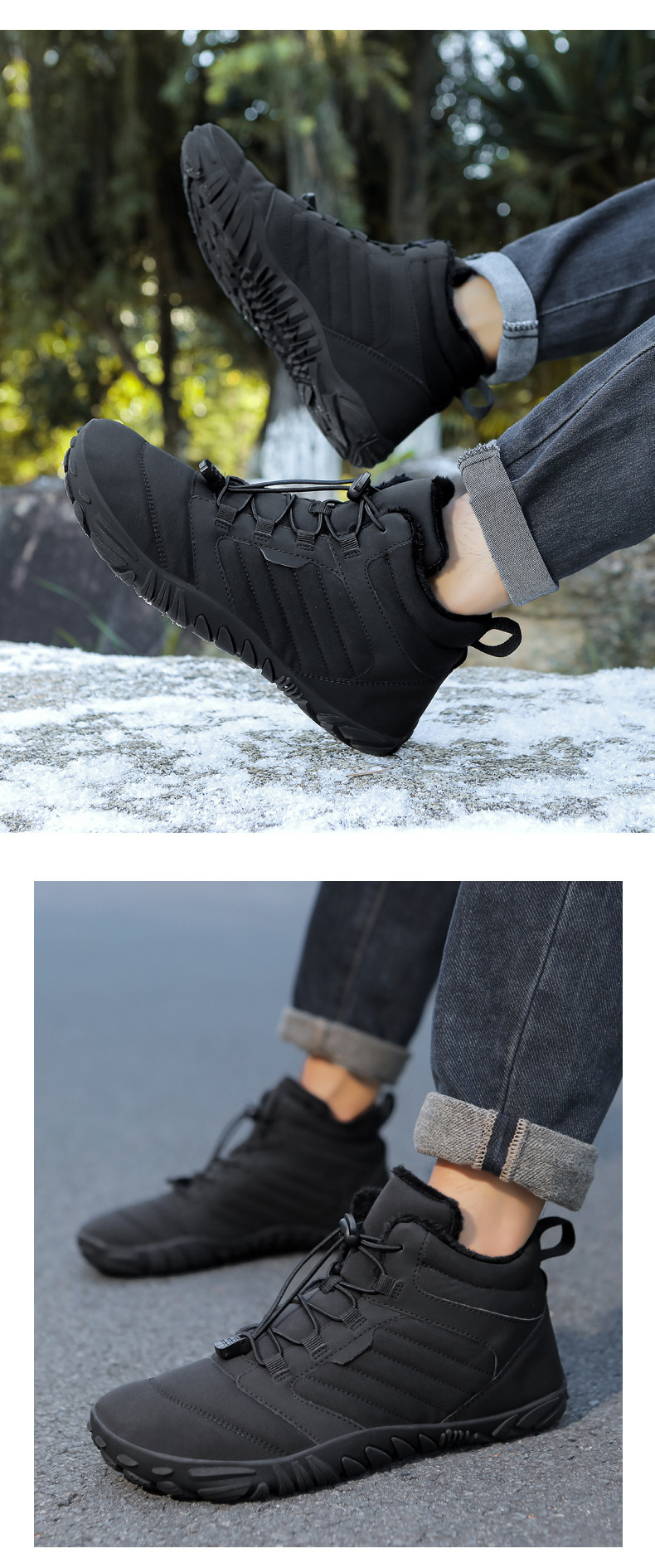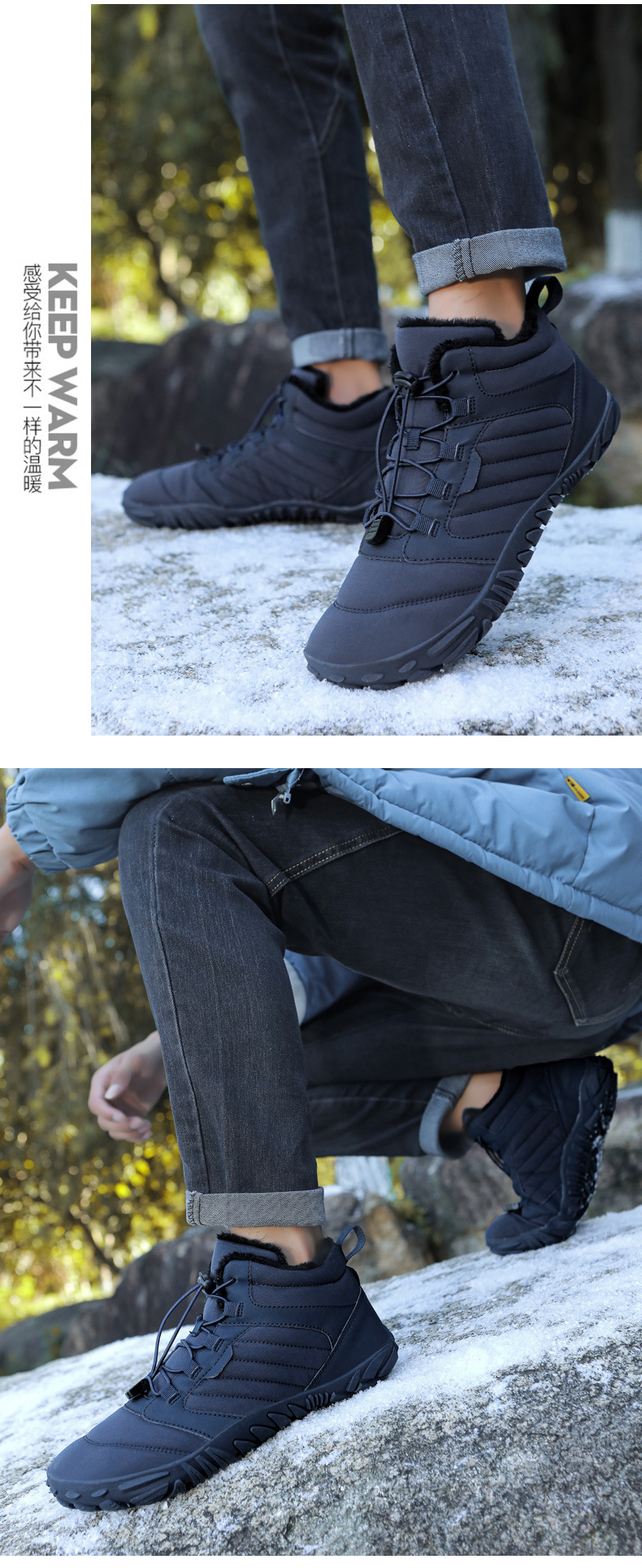 跨境户外休闲加绒保暖鞋加厚登山棉鞋五指大码棉鞋耐磨防滑雪地靴