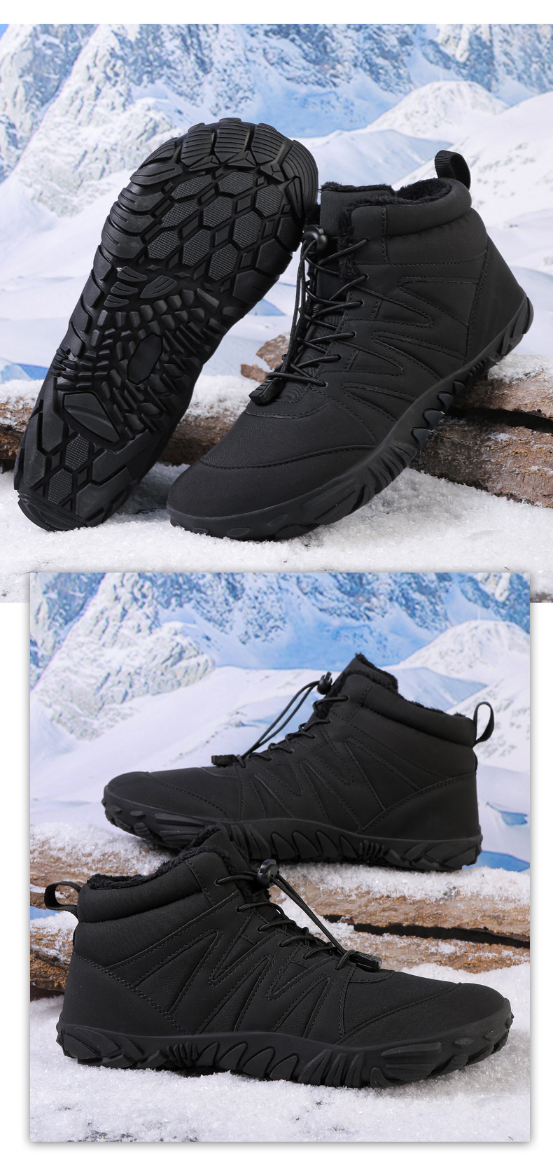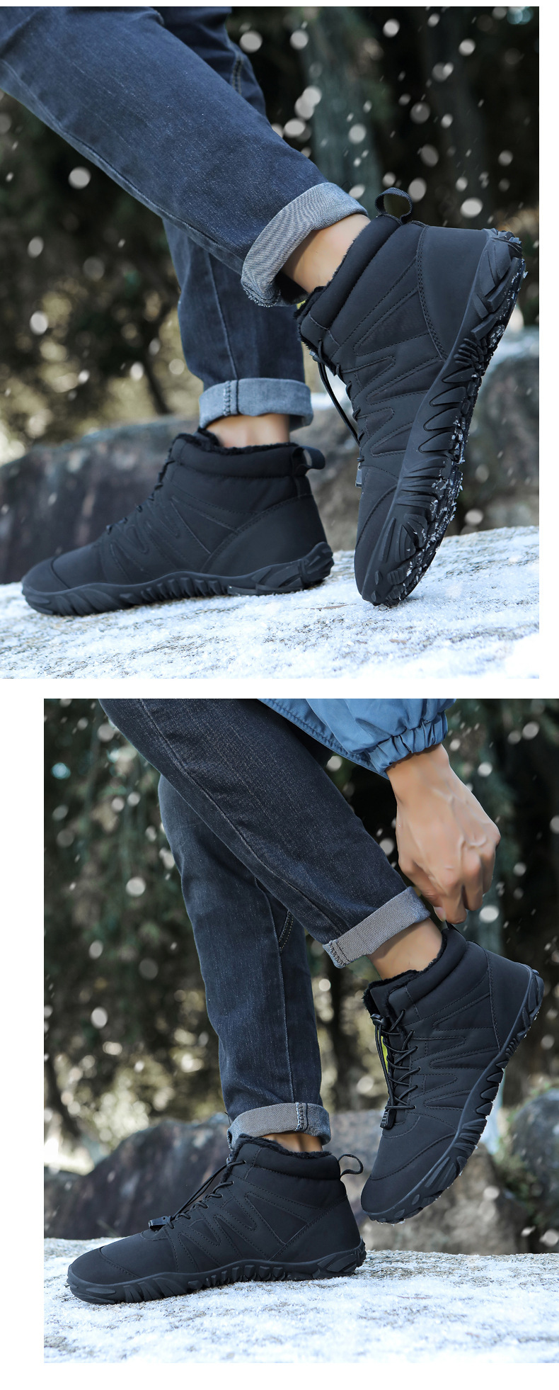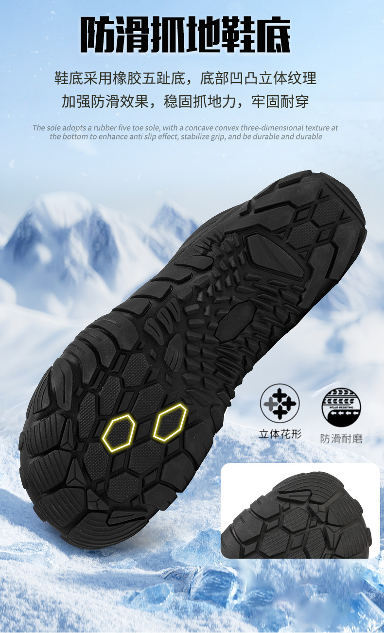 户外加绒加厚保暖鞋登山鞋徒步棉鞋五指鞋男女大码耐磨防滑雪地靴