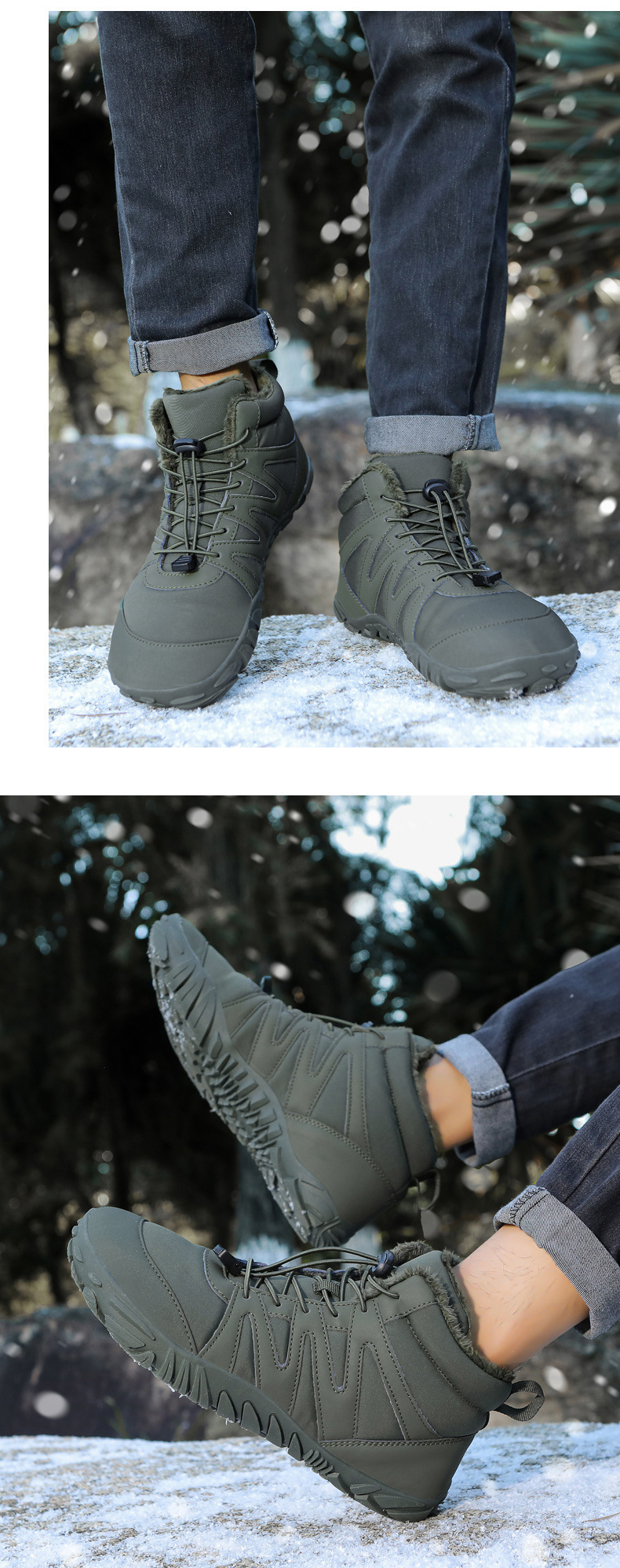 厳選されたハイトップアウトドアハイキングと登山コットンシューズ、防水、防寒、滑り止め、耐摩耗性、ベルベットの暖かいスノーブーツ、ワークブーツ
