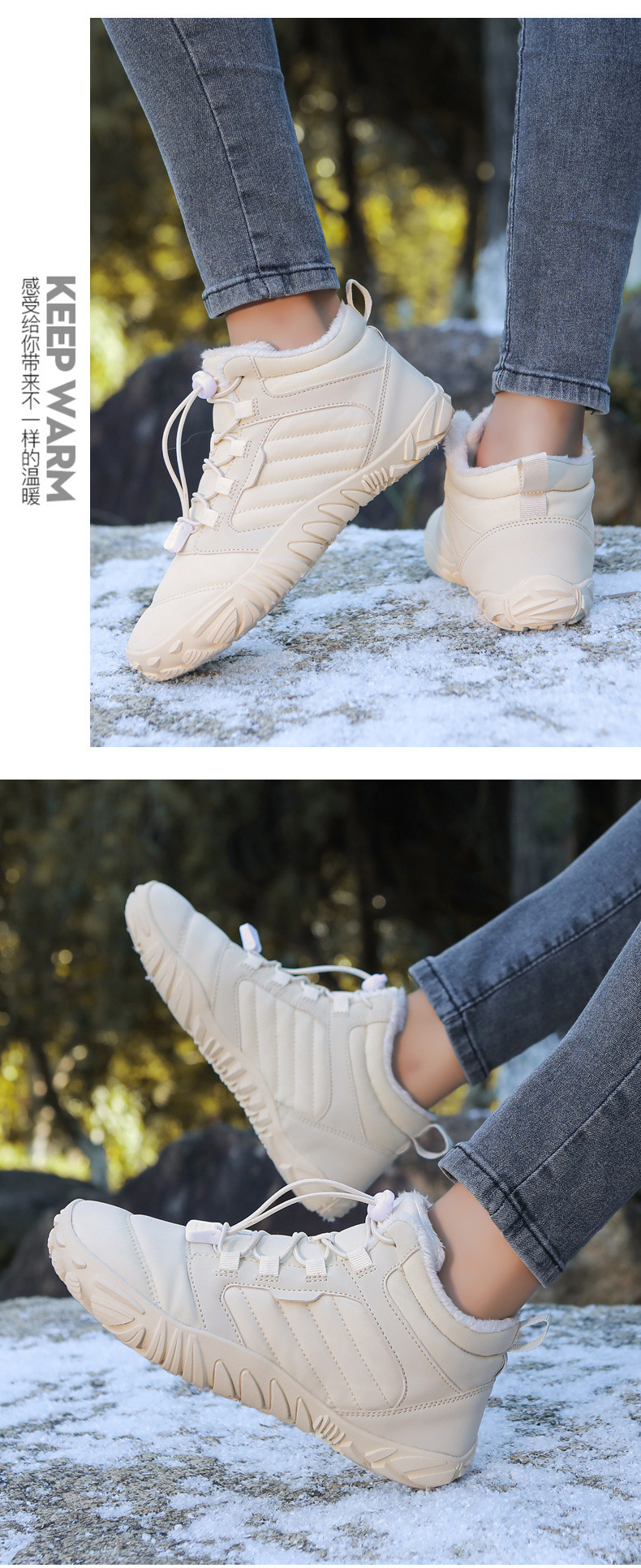 五指户外休闲运动大码雪地靴户外冬季男女情侣加绒加厚防滑雪地靴