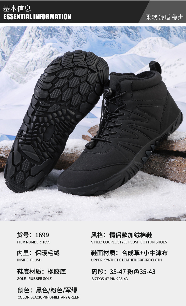 新款户外大码雪地靴冬季男女情侣加绒加厚保暖防滑徒步登山棉鞋