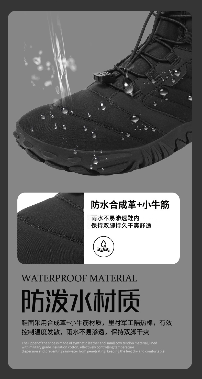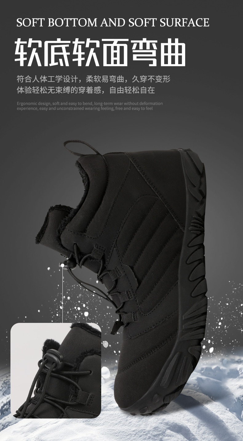 戸外雪地靴男越境冬新型滑り止め防水ベルベット保温綿靴女底裸足五本指靴
