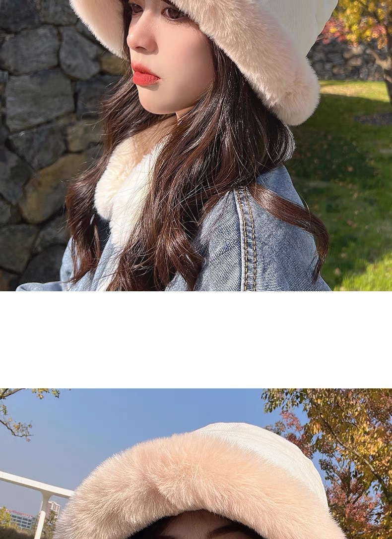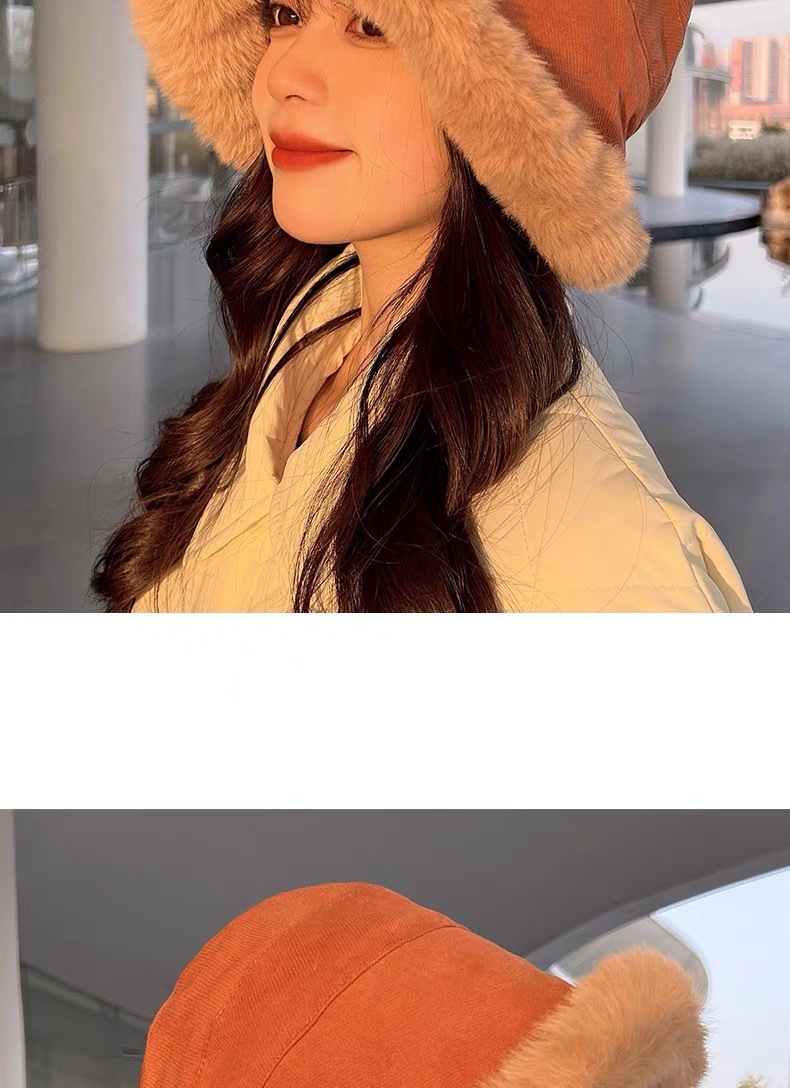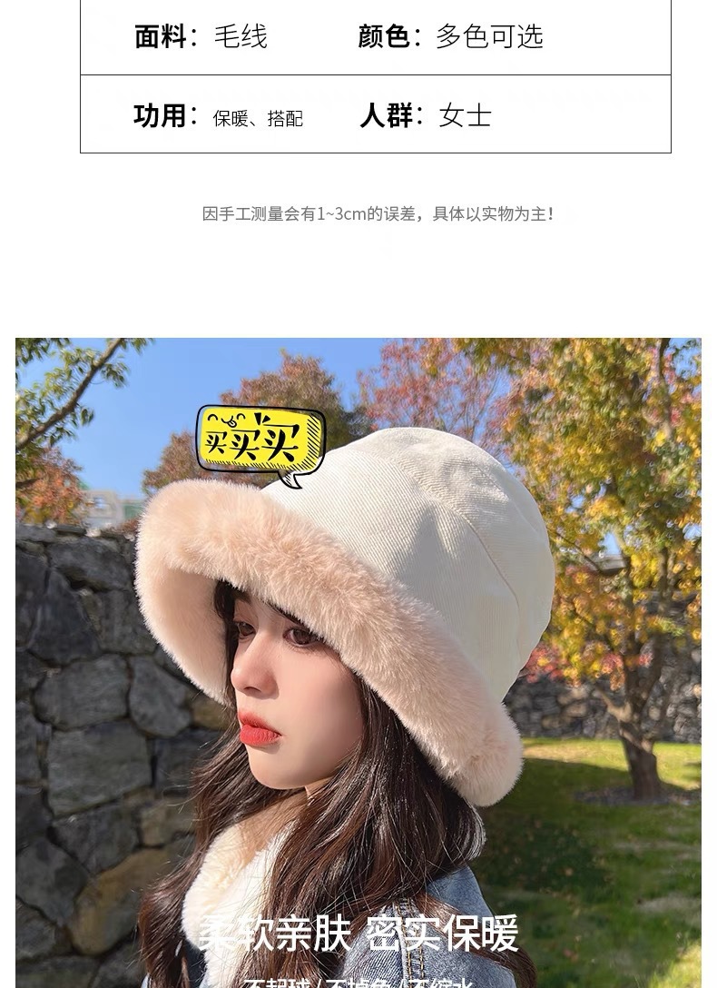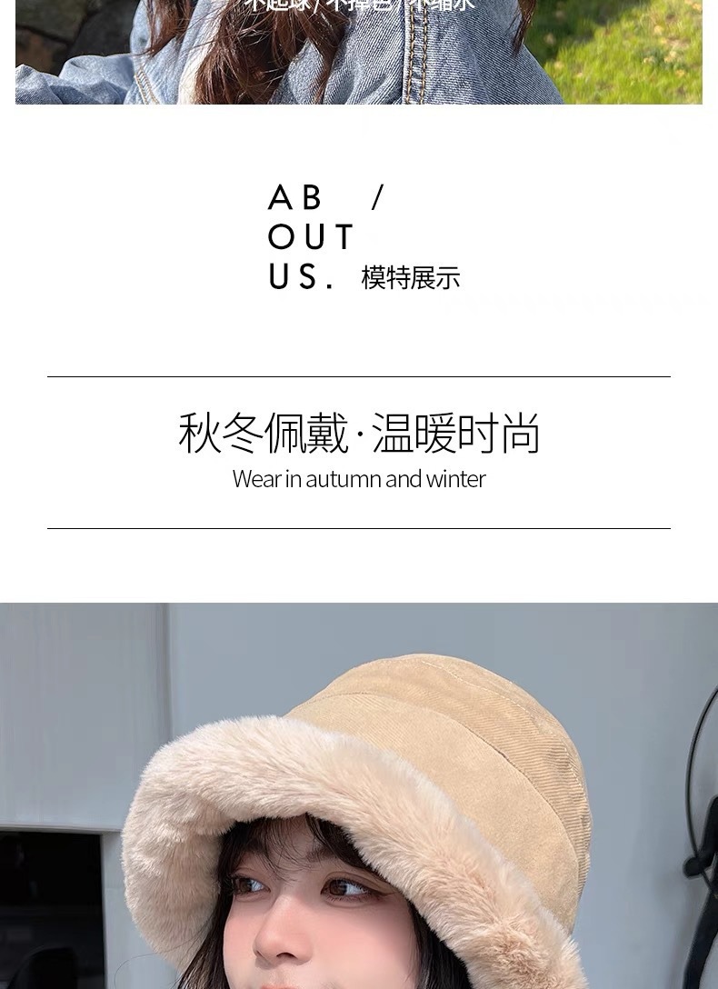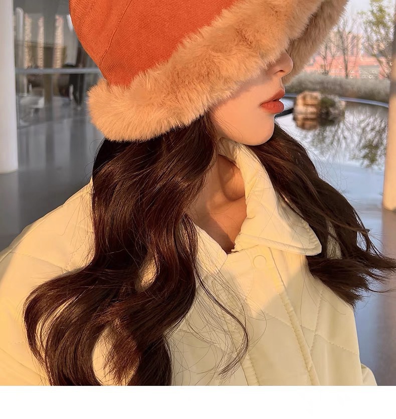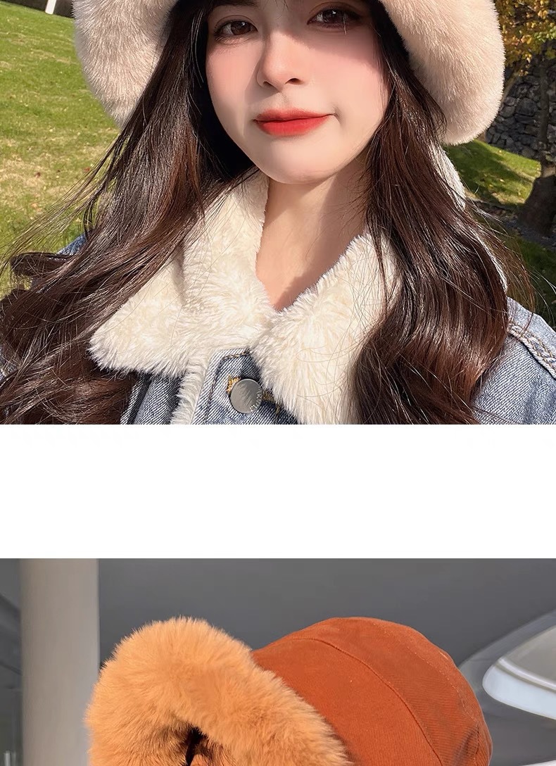 纯色毛绒渔夫帽女冬季保暖显脸小毛茸茸软糯盆帽水桶帽百搭大头围