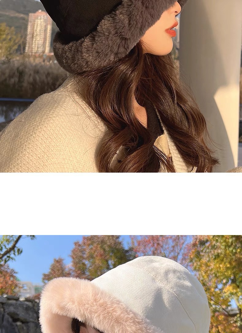 冬季帽子女款大头围显脸小盆帽系带毛绒渔夫帽百搭加厚护耳包头帽