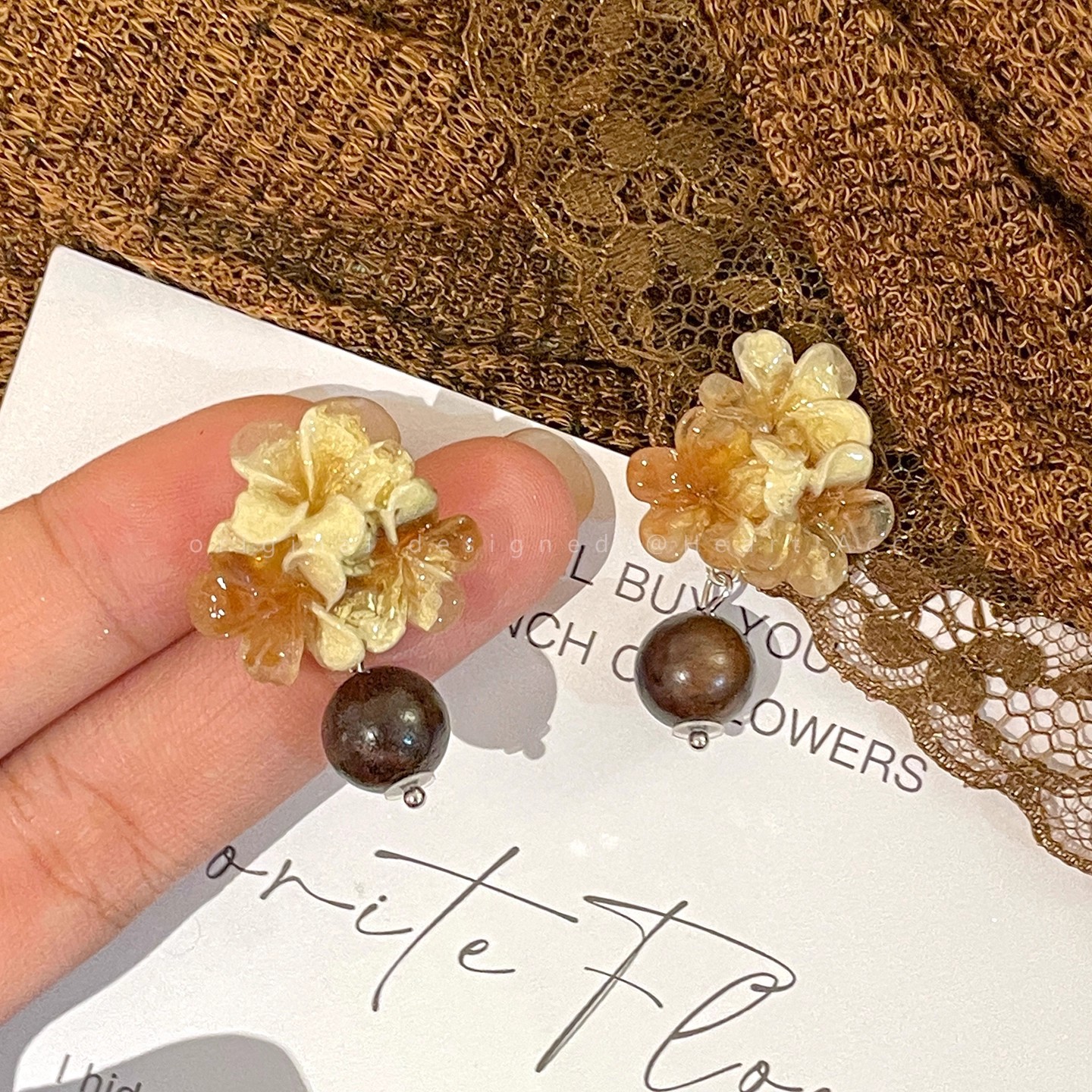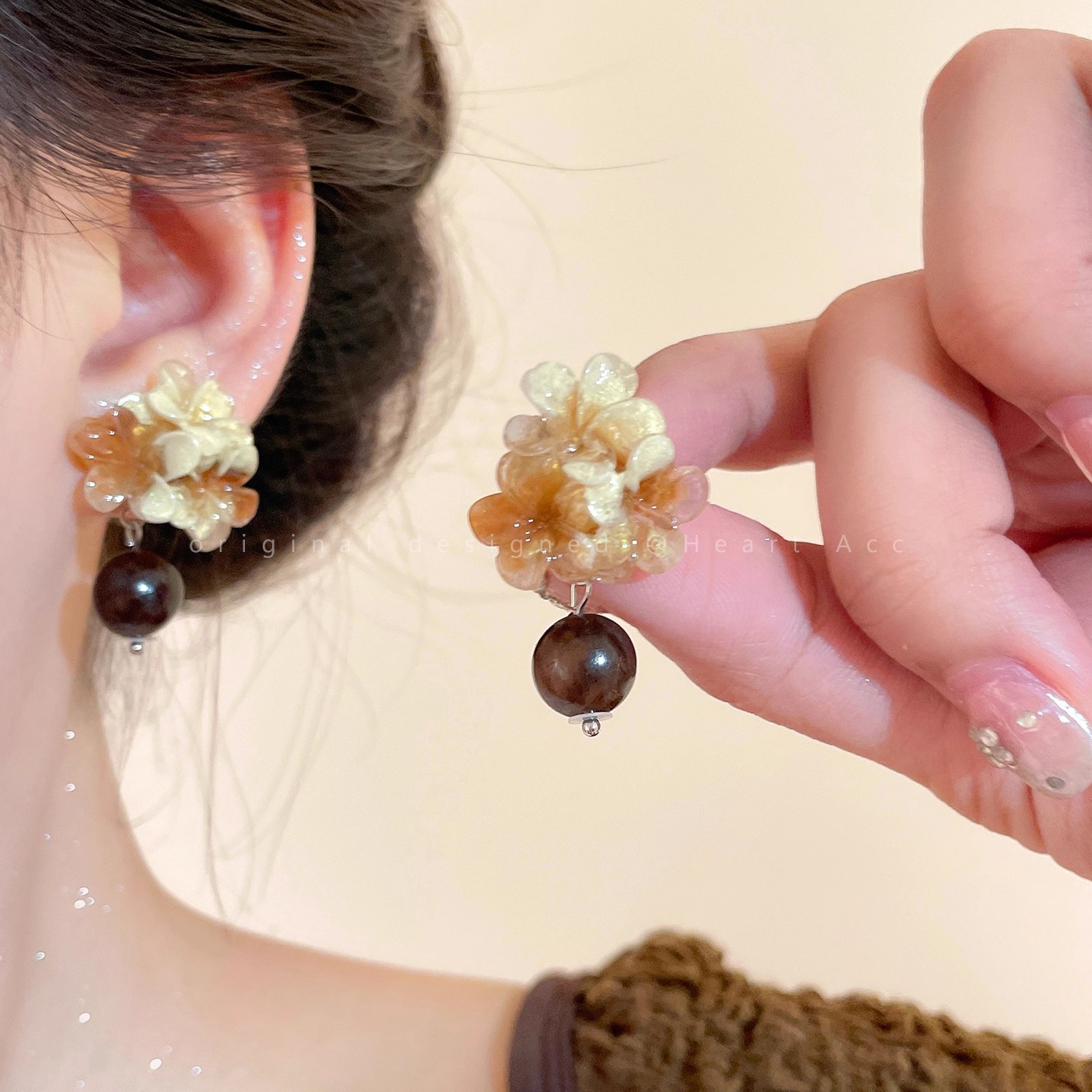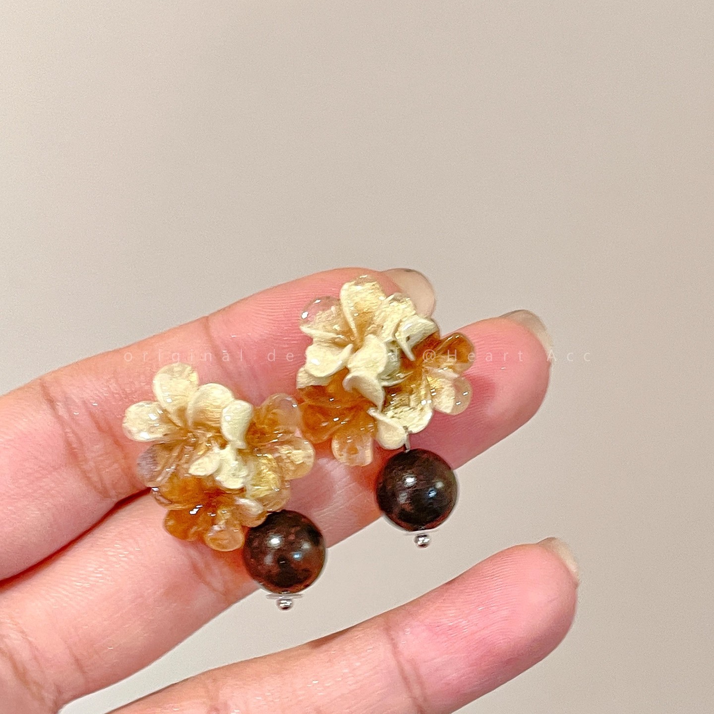 夜更かしのキキョウ「春の凧」新中国風レトロフラワーボール天然石イヤリングクールニッチ万能イヤリング