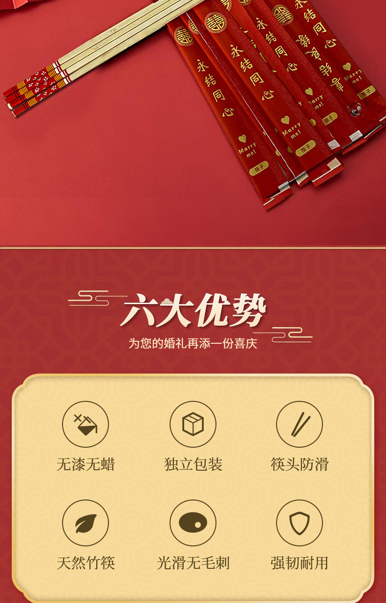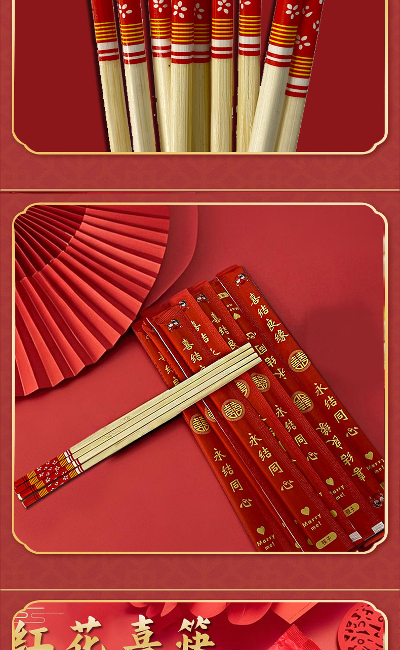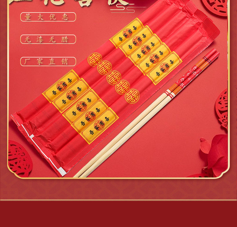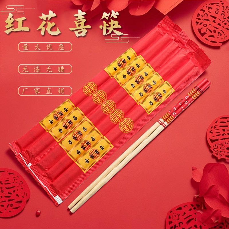 结婚一次性筷子婚礼婚宴酒席专用筷子红色喜庆独立包装加长加粗