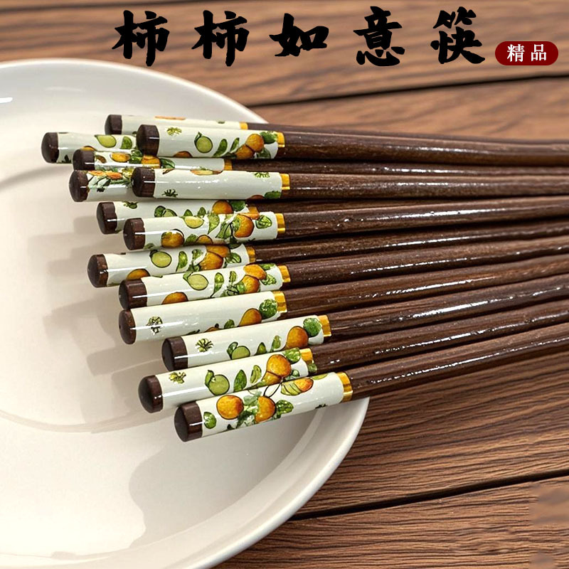 新作事事順箸 中国風高級家庭用木製抗菌防カビ耐高温無垢材滑り止め箸