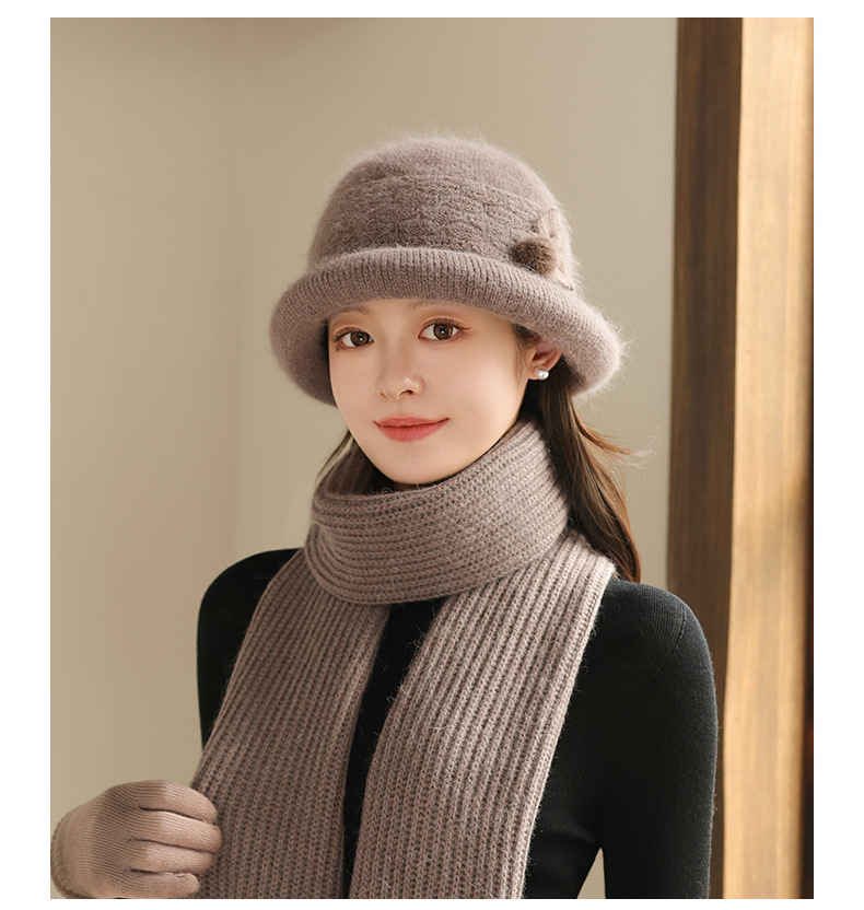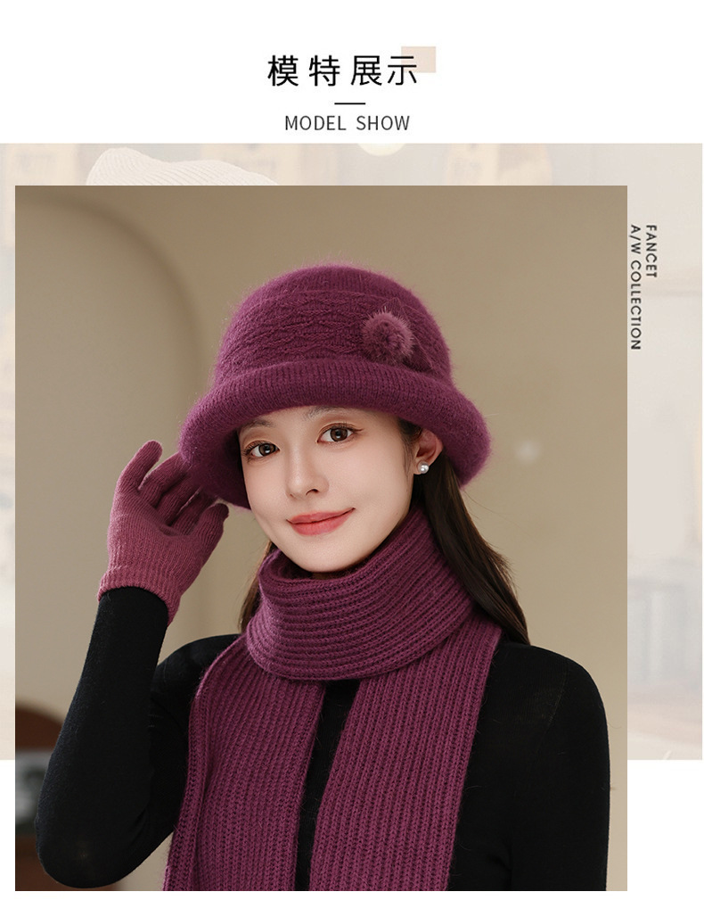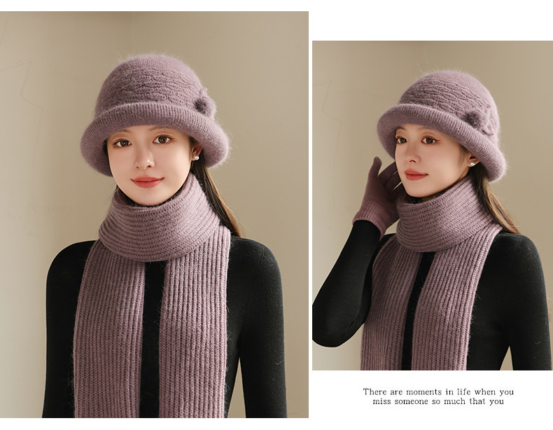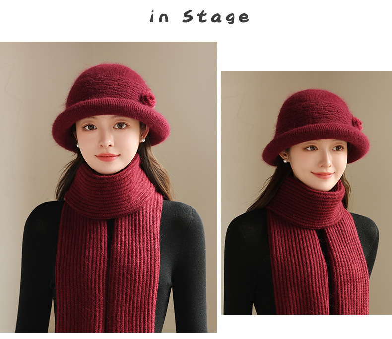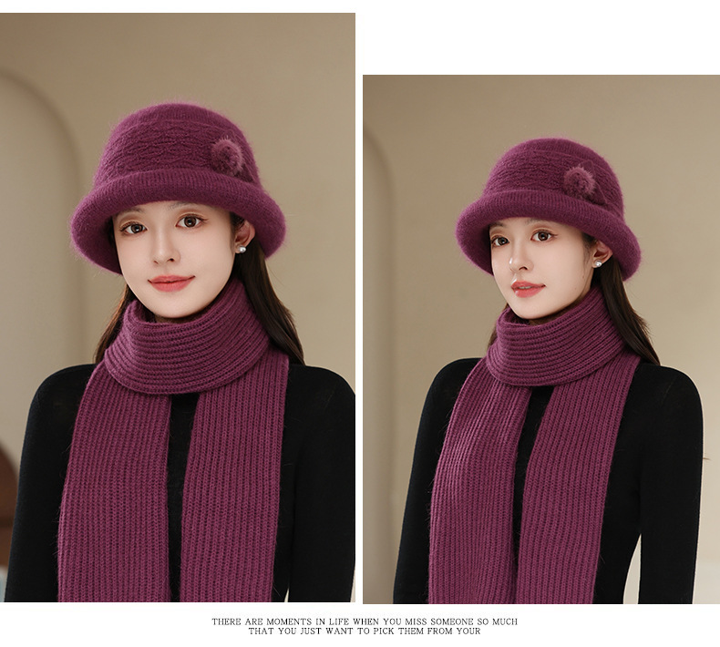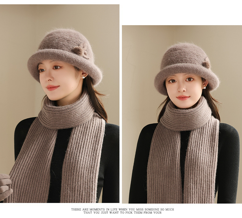 秋冬妈妈帽子女新款中老年时尚兔毛盆帽加绒加厚保暖帽子围脖套件