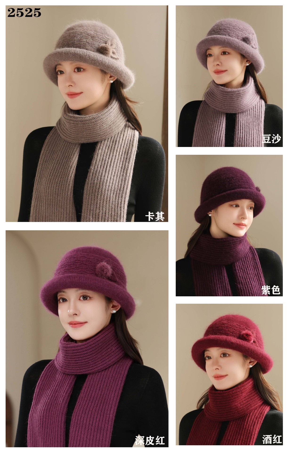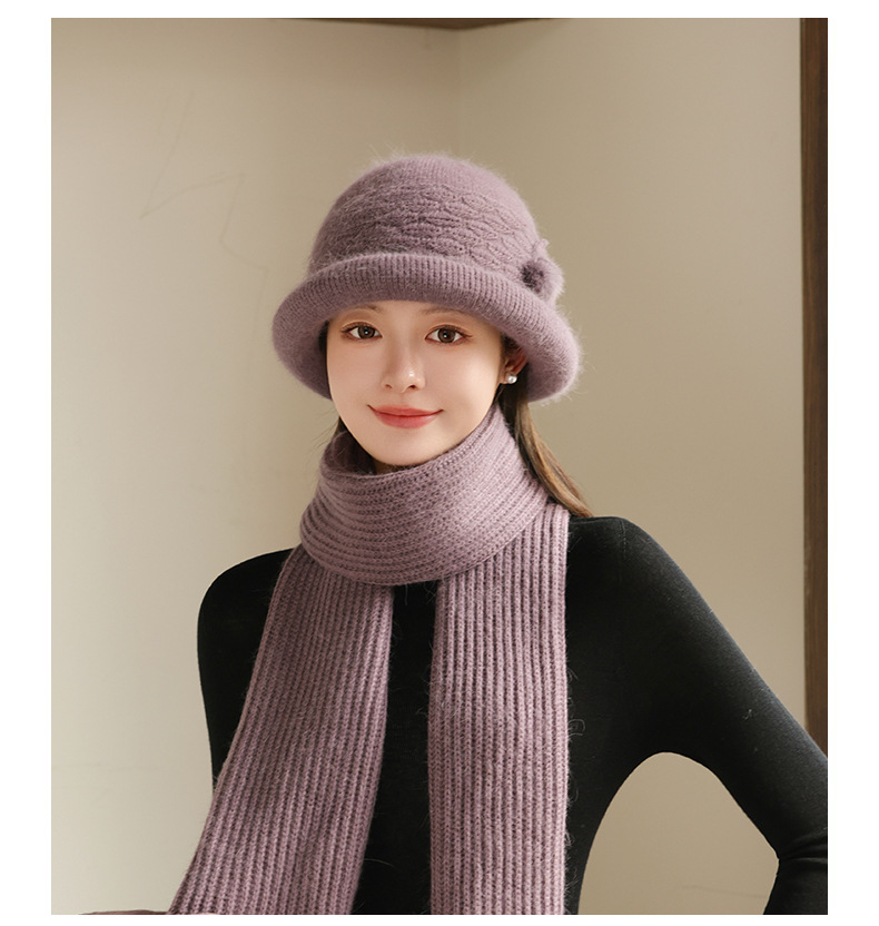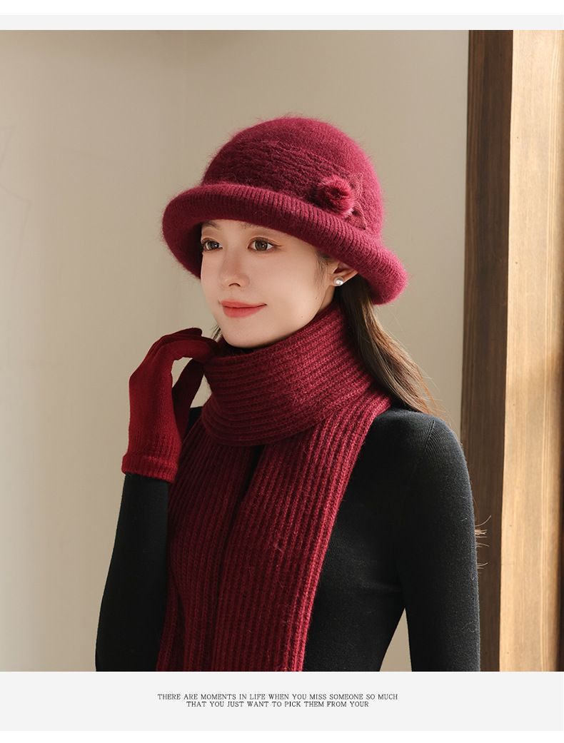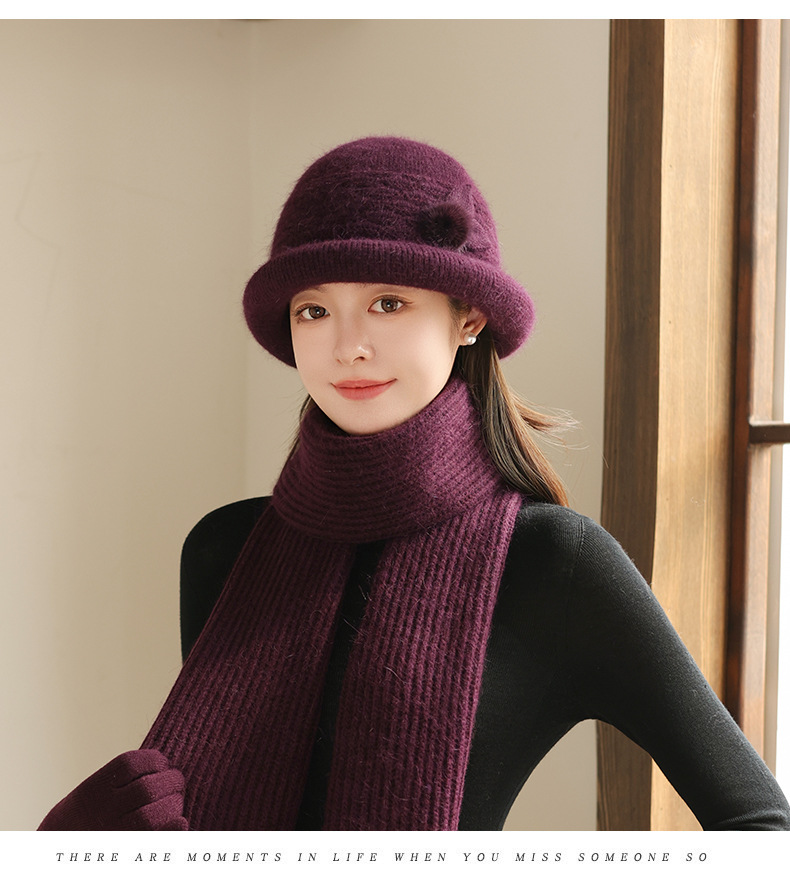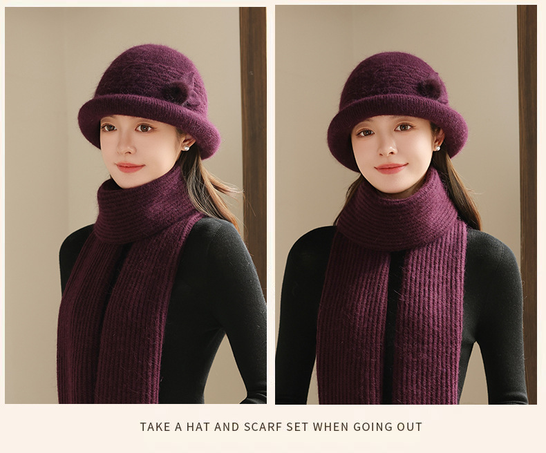 秋冬妈妈帽子女新款中老年时尚兔毛盆帽加绒加厚保暖帽子围脖套件