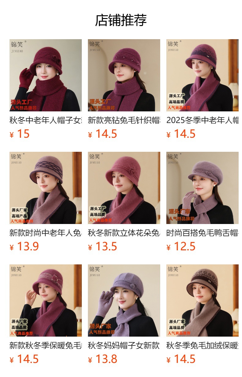 新款时尚中老年人兔毛帽子女冬季妈妈盆帽保暖防寒加绒加厚针织帽