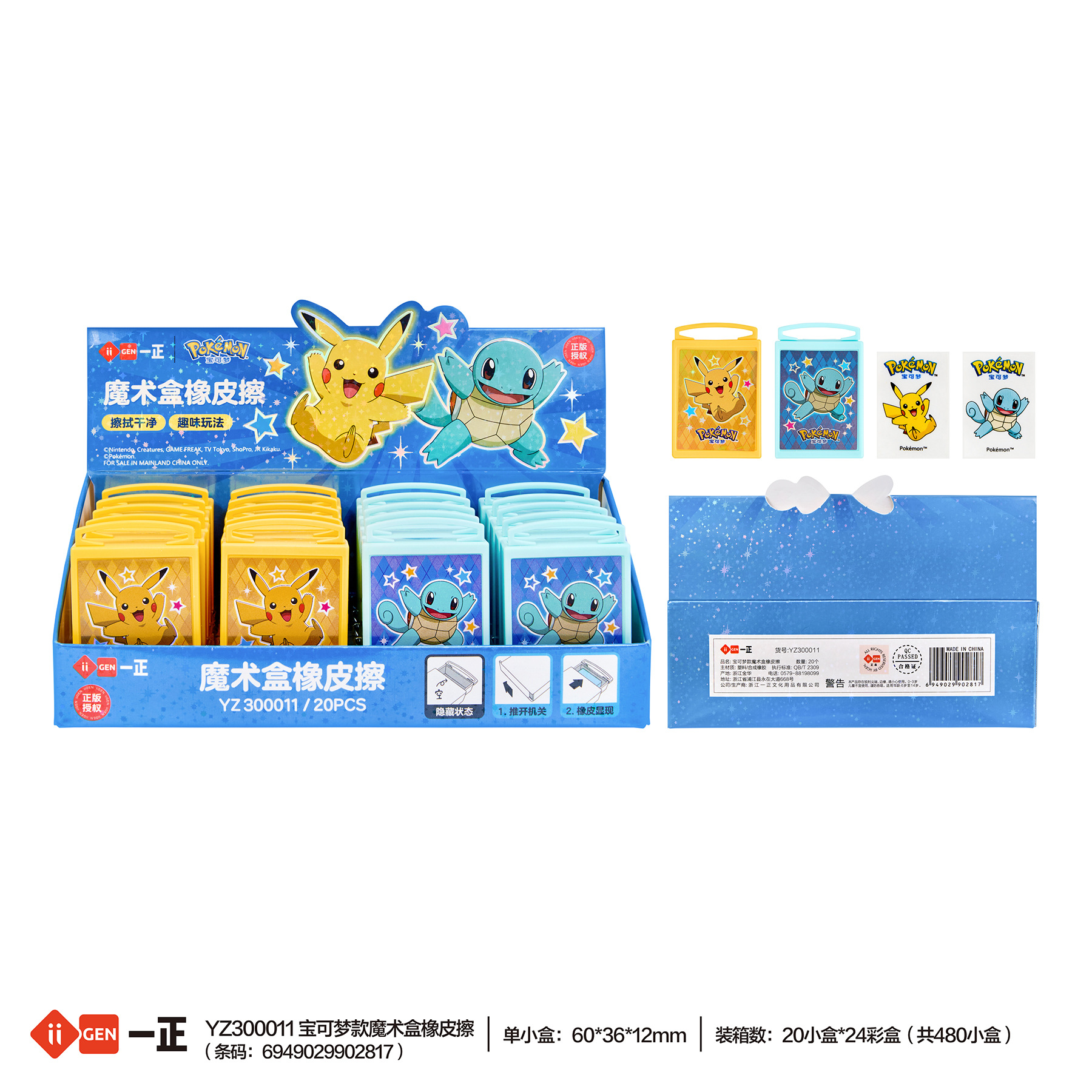 iigen一正文具宝可梦形象魔术盒橡皮擦卡通趣味小学生专用铅笔擦