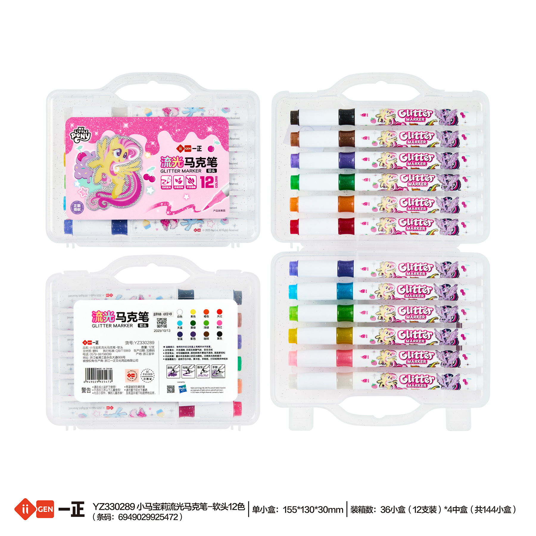 iigen一正文具小马宝莉形象流光马克笔小学生专用手账软头马克笔