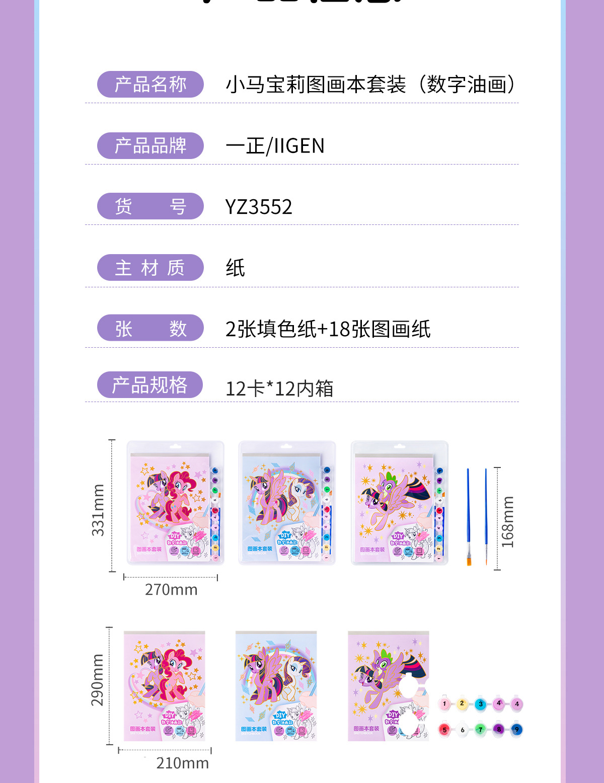 封面颜色 YZ3552小马宝莉图画本套装(数字油画)