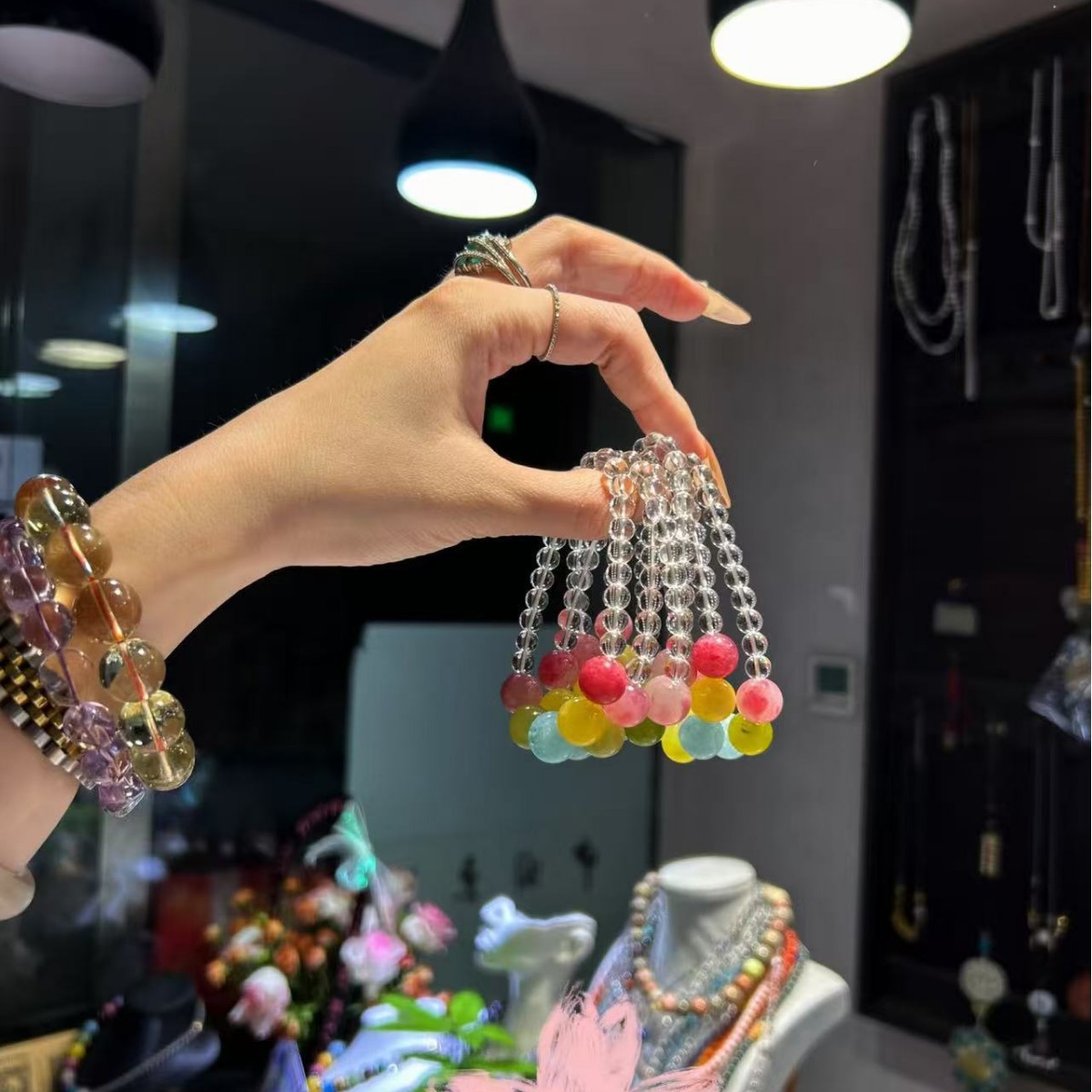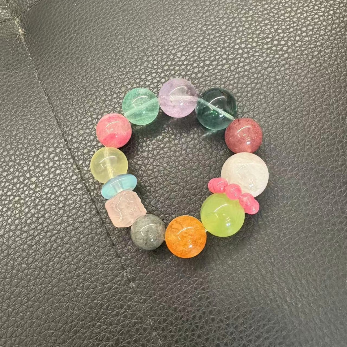 Duobao クリスタルブレスレット、多用途のドーパミンカラービーズクリスタルブレスレット、女性用、ファッショナブルで多用途、新鮮で甘いジュエリー