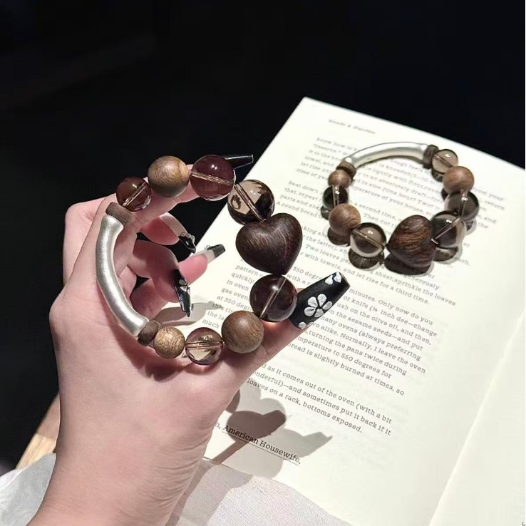 复古清冷感茶晶半镯高颜值精致百搭手饰小众沉香珠手链高级感