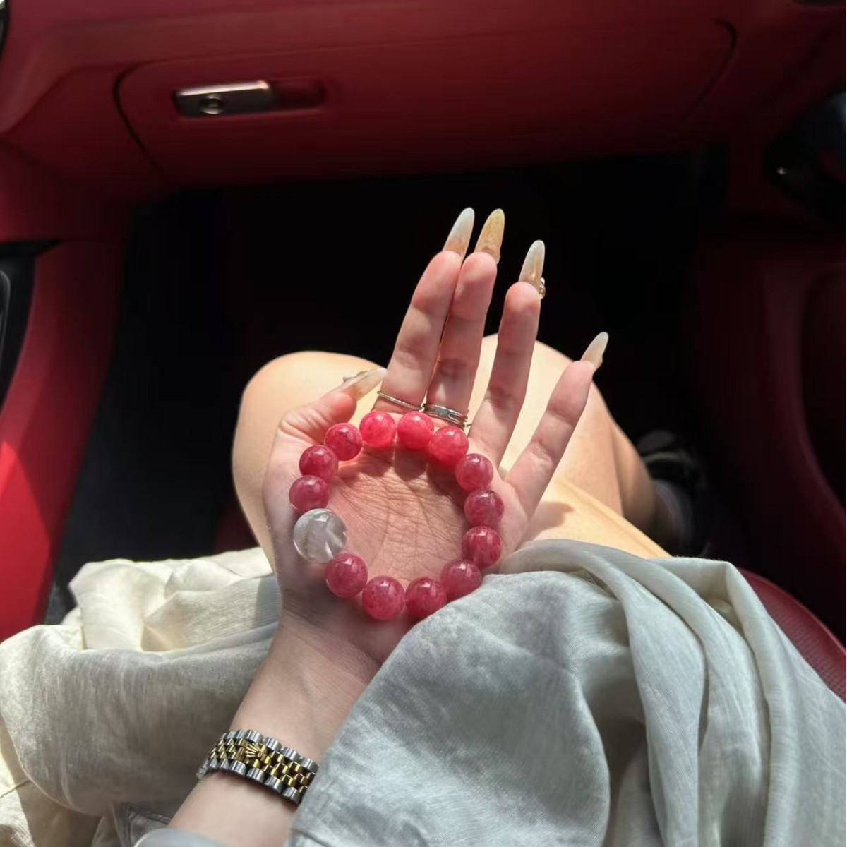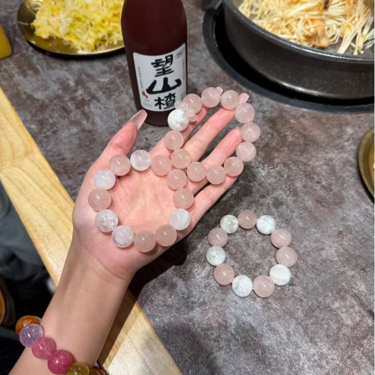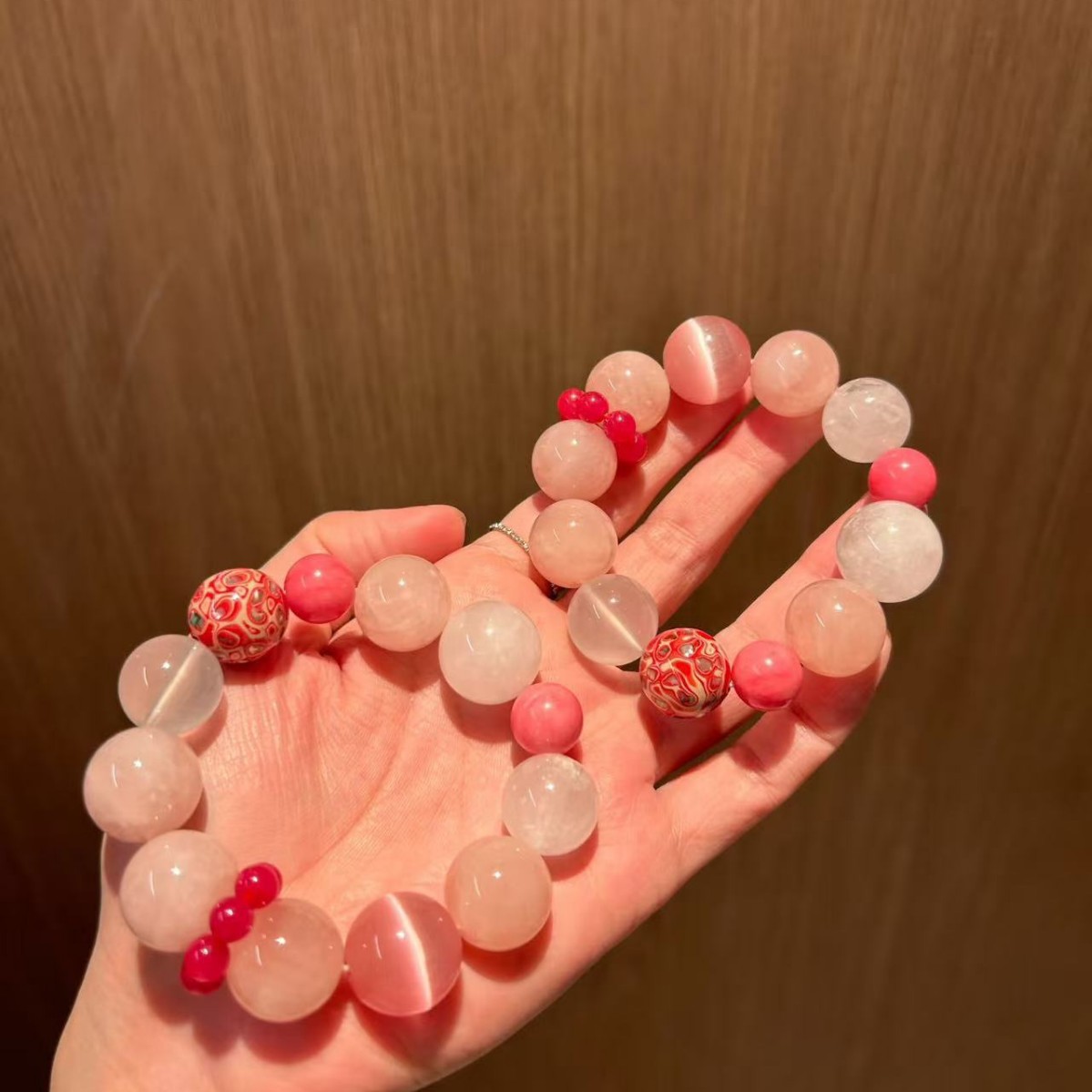 招财桃花手串女生天然粉水晶手链转运珠精致小众无玛瑙多宝