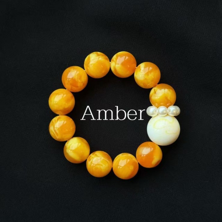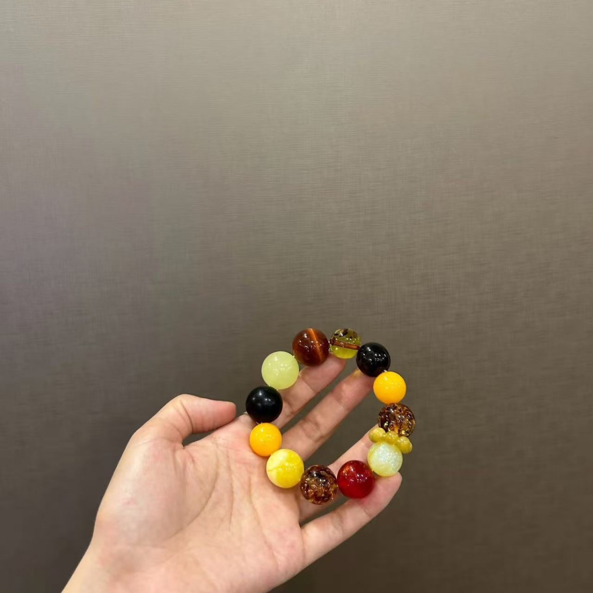 收藏级花珀轻奢手串爆款高级感招财蔷薇跑环蜜蜡顶珠