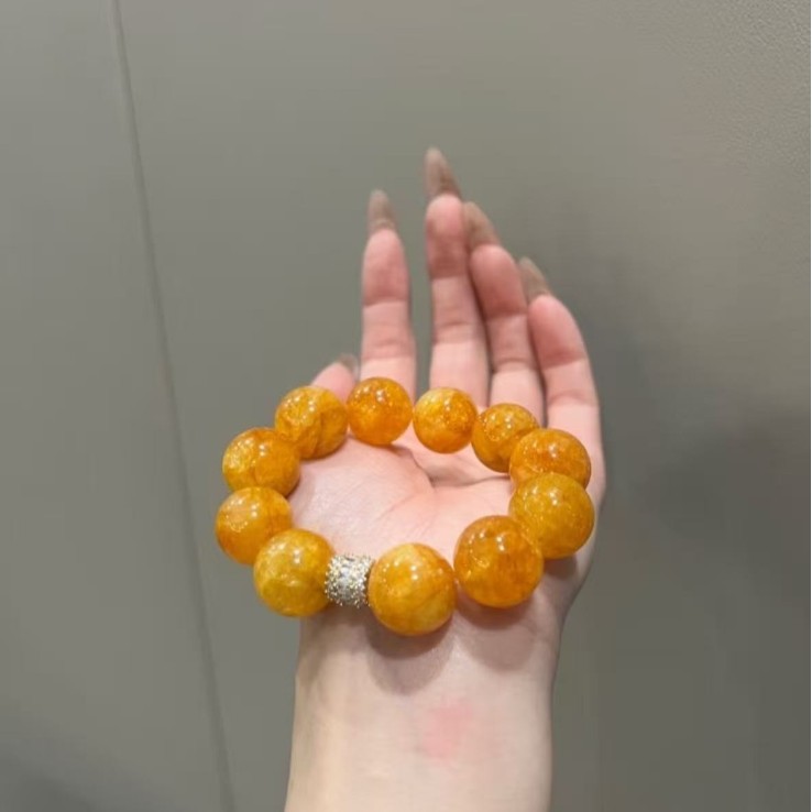 批发天然黄胶花真水晶女士手链高级感时尚轻奢大气14mm手串送闺蜜