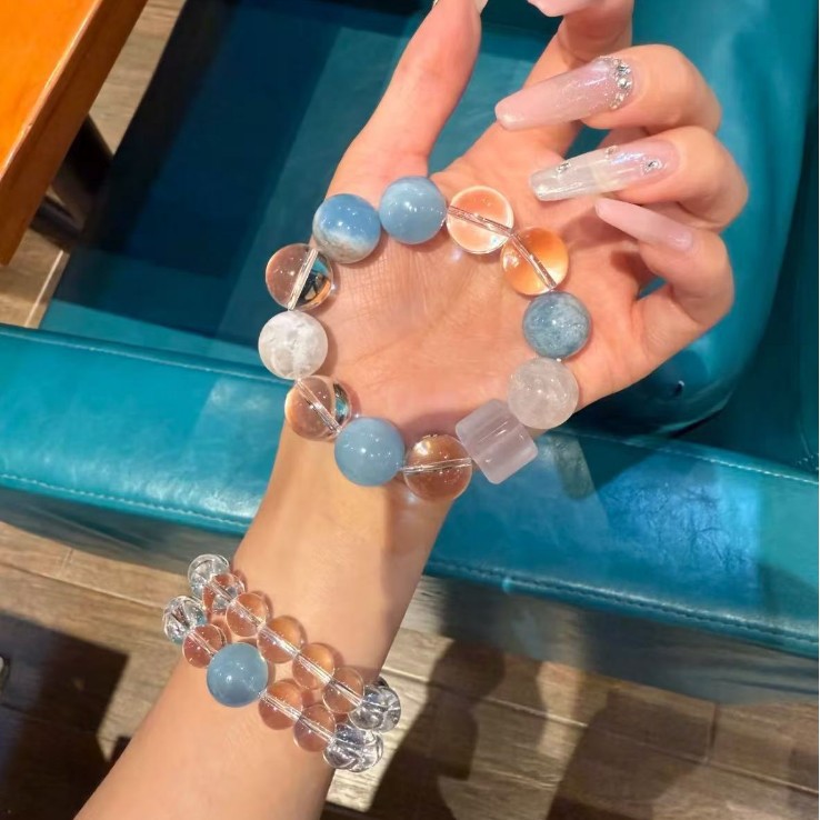 天然水晶アクアマリンライト高級ハイエンドホワイトクリスタルブレスレットニッチサマー