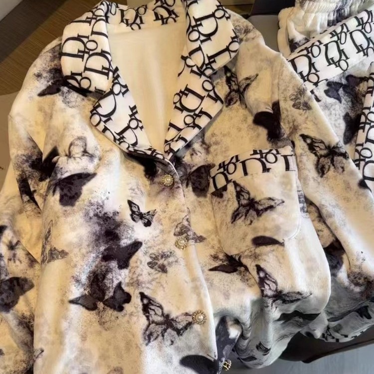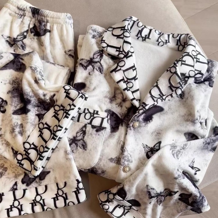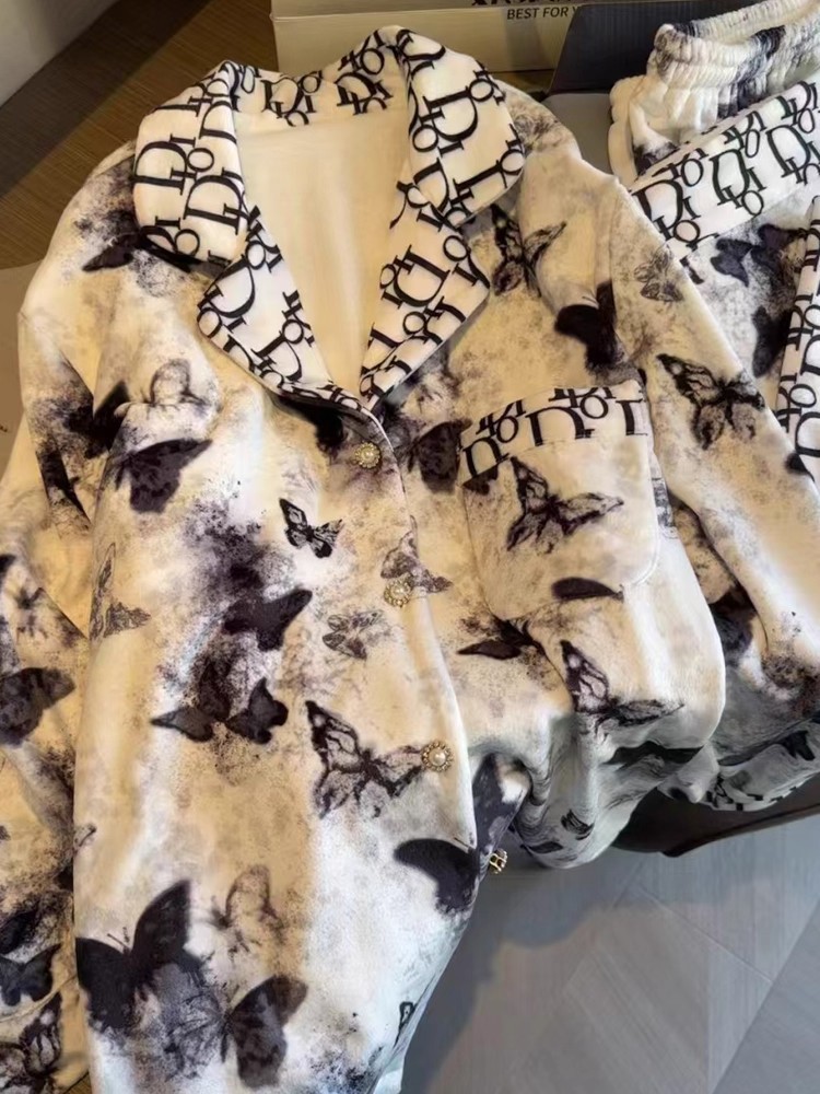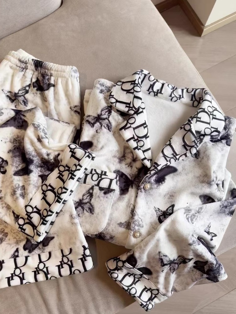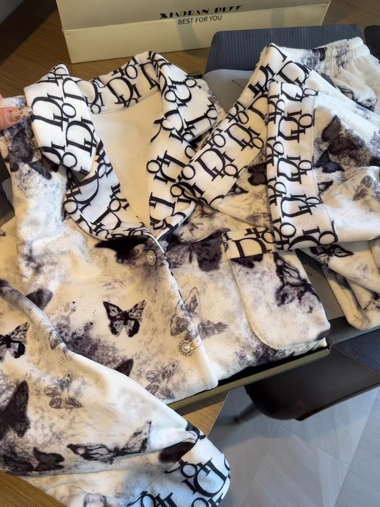 海岛绒睡衣女秋冬2025新款网红爆款高级感轻奢蝴蝶保暖家居服套装