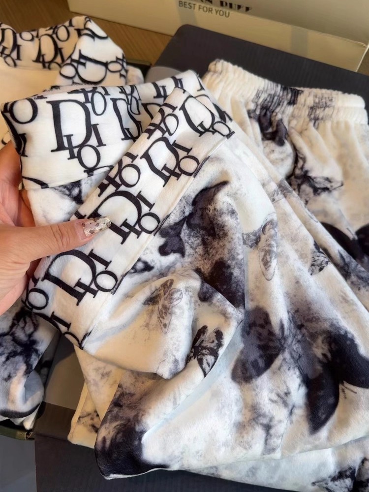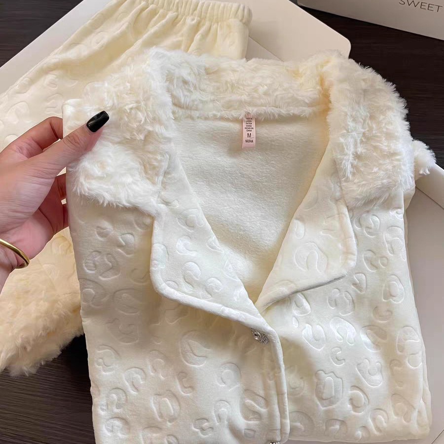 海岛绒睡衣女新款秋冬季加厚家居服双面绒保暖时尚豹纹轻奢小香风