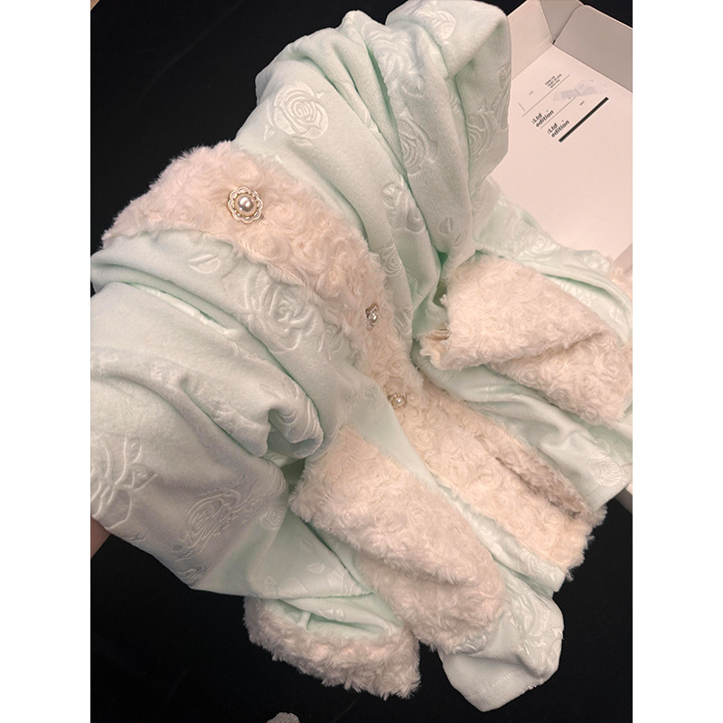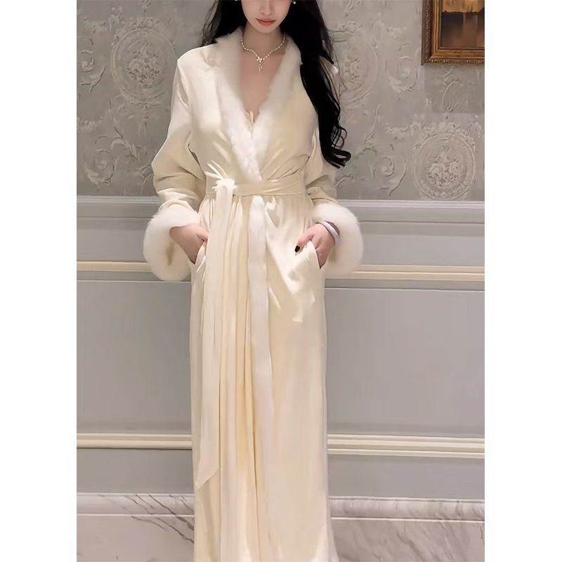 2025新款秋冬睡袍女法式感花边毛茸茸奢华气质显瘦浴袍家居服