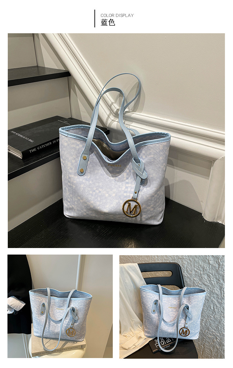 シンプルな気質の大容量トートバッグ女性のための 2024 夏の新しいスタイルの小さな新鮮なプリントショルダー通勤コンピュータバッグ