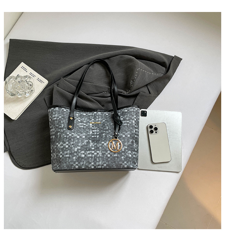 跨境气质包包质感复古大容量印花女包新款时尚通勤托特包单肩包