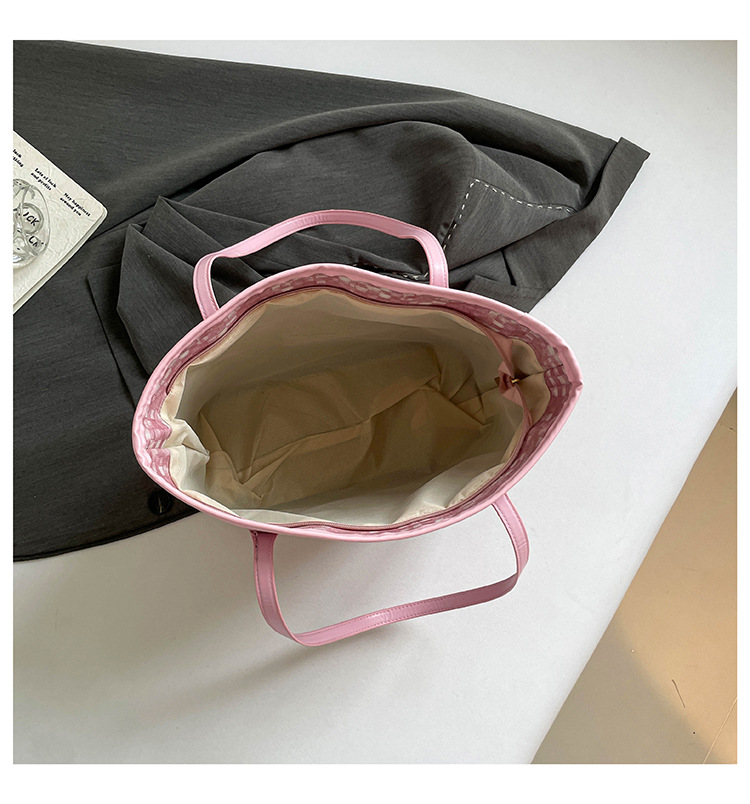 カジュアル通勤大容量バッグ女性のための 2024 新しいファッション大学生クラスシングルショルダーストライプ刺繍トートバッグ