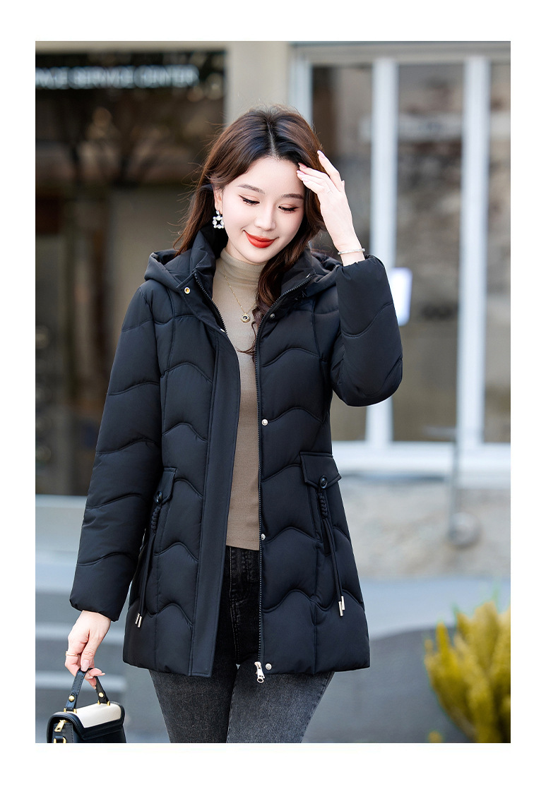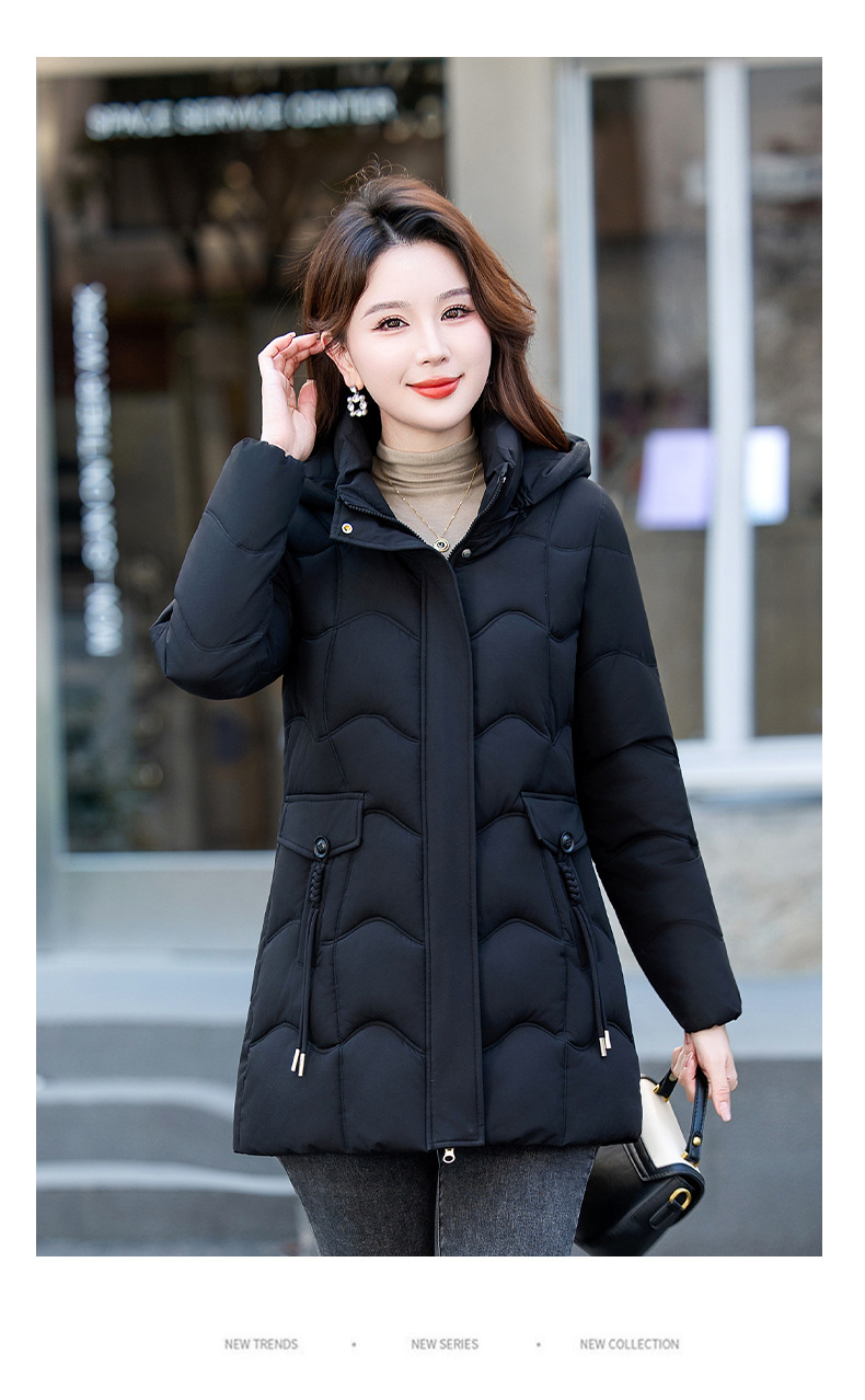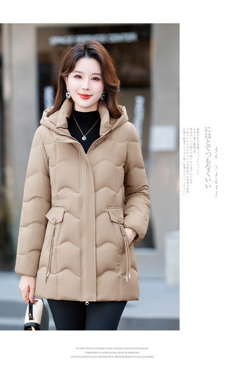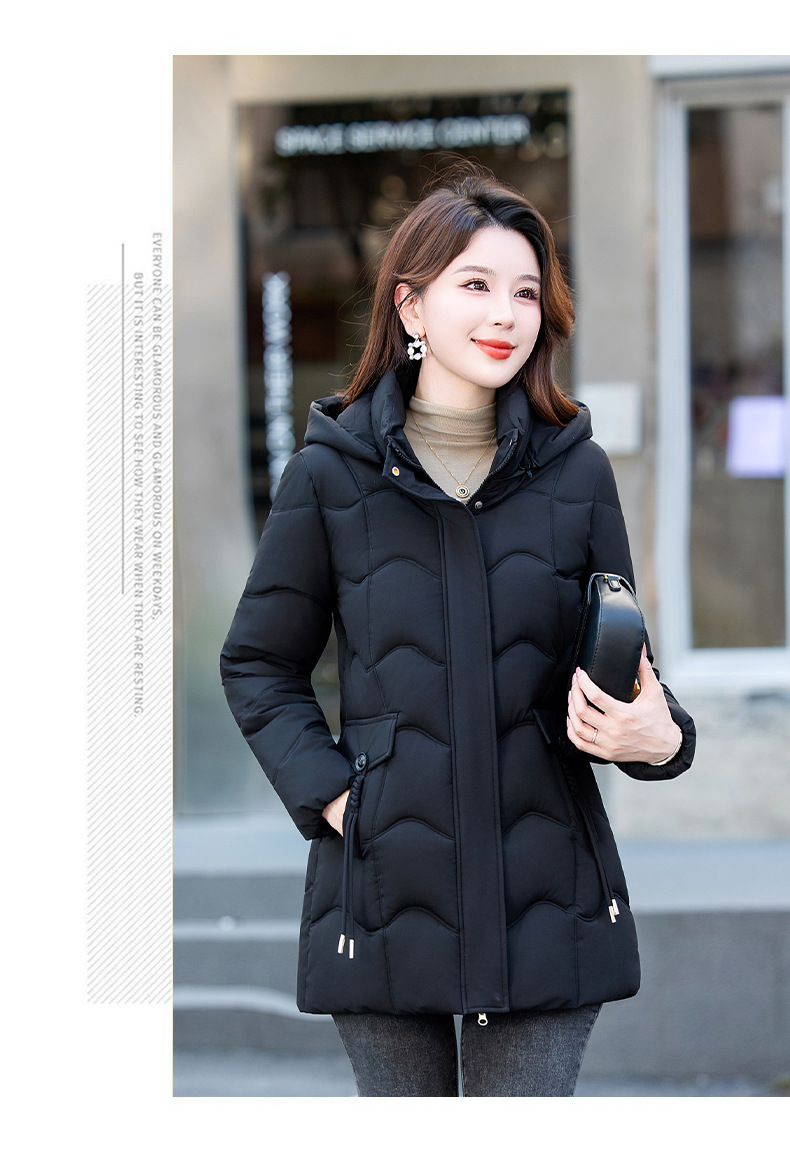 2025年冬新作の人気商品、韓国風スリムフィット中丈綿服、厚手で暖かい万能レディースコート