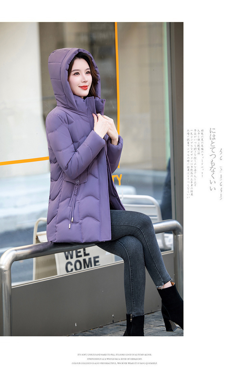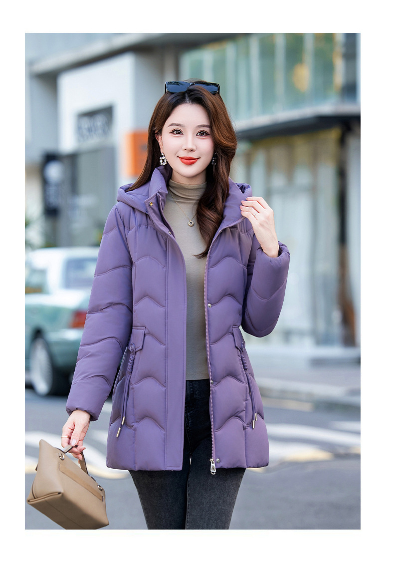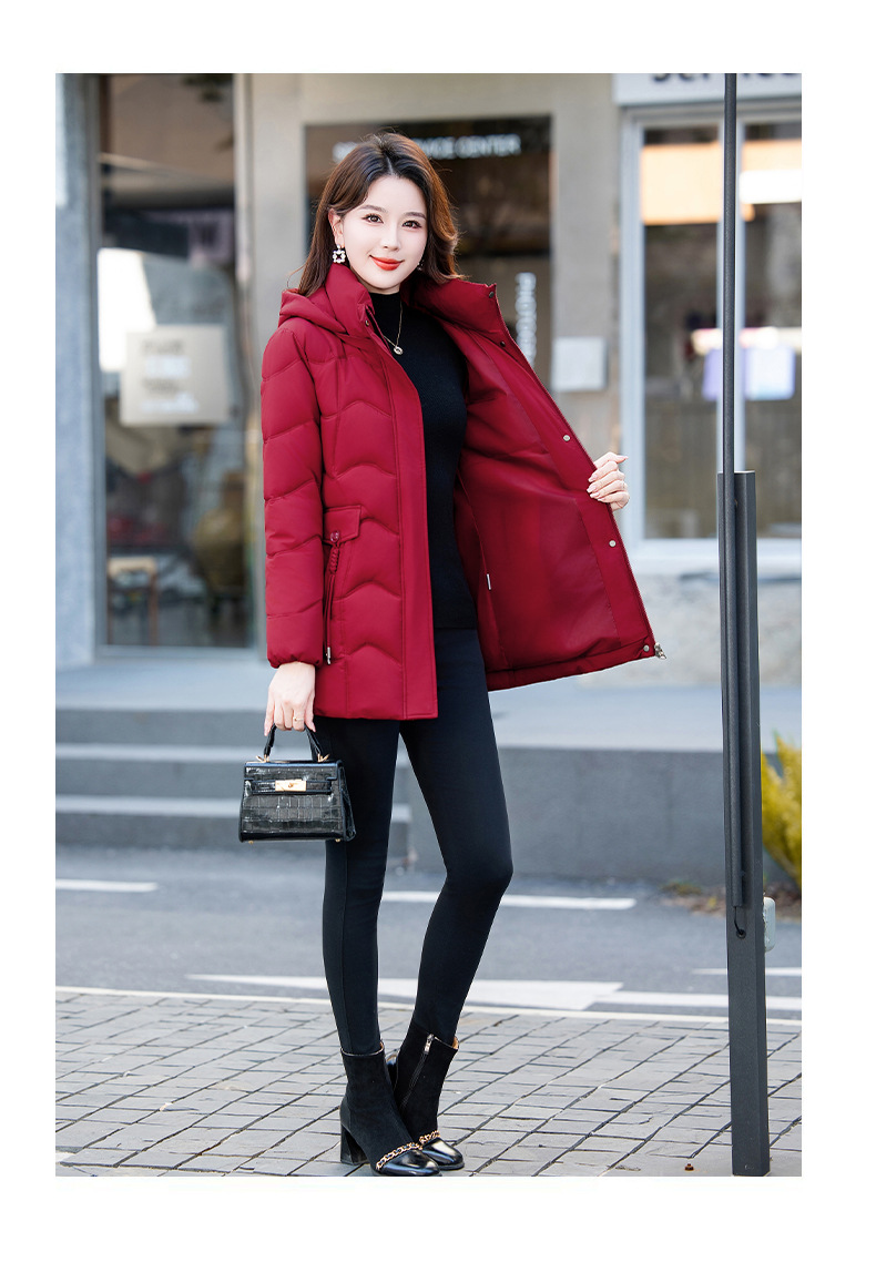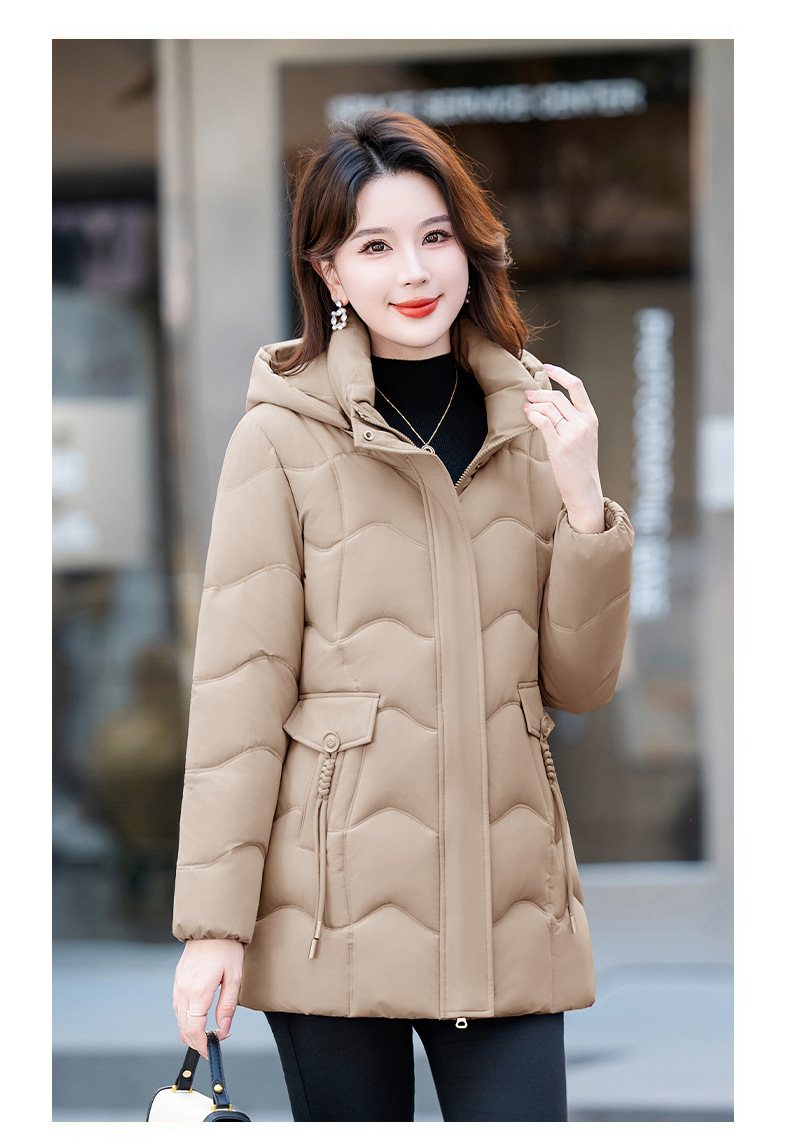 2025年冬新作の人気商品、韓国風スリムフィット中丈綿服、厚手で暖かい万能レディースコート