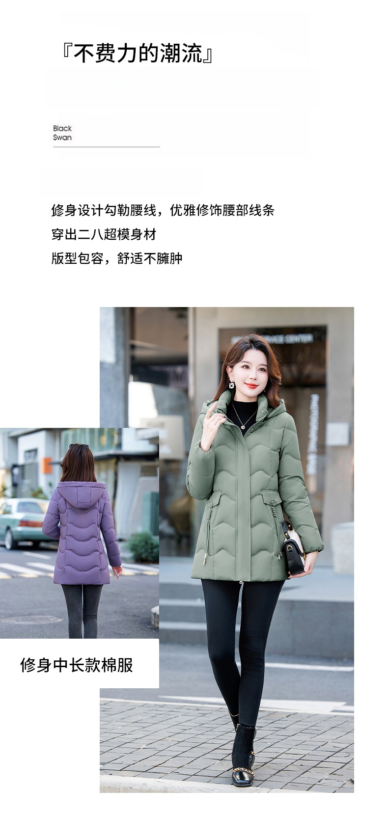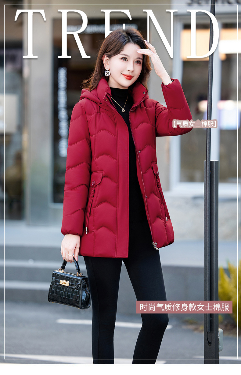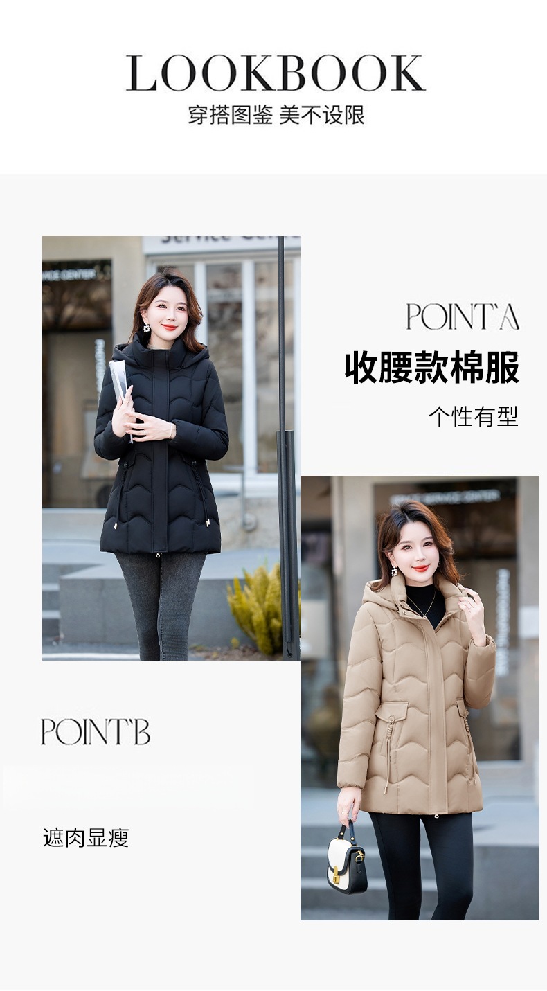 冬季新款棉服女中长款修身显瘦棉衣时尚减龄百搭加厚保暖棉袄外套