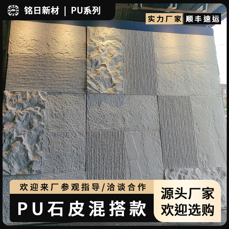 pu仿石材轻质pu文化石山岩石pu石皮流水石蘑菇石室内背景墙装饰板