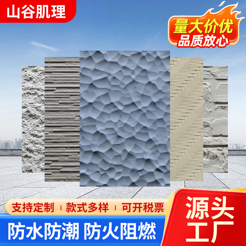 軽量PU金背景壁メーカー石皮文化石水幕壁景観石板庭園池外壁煉瓦