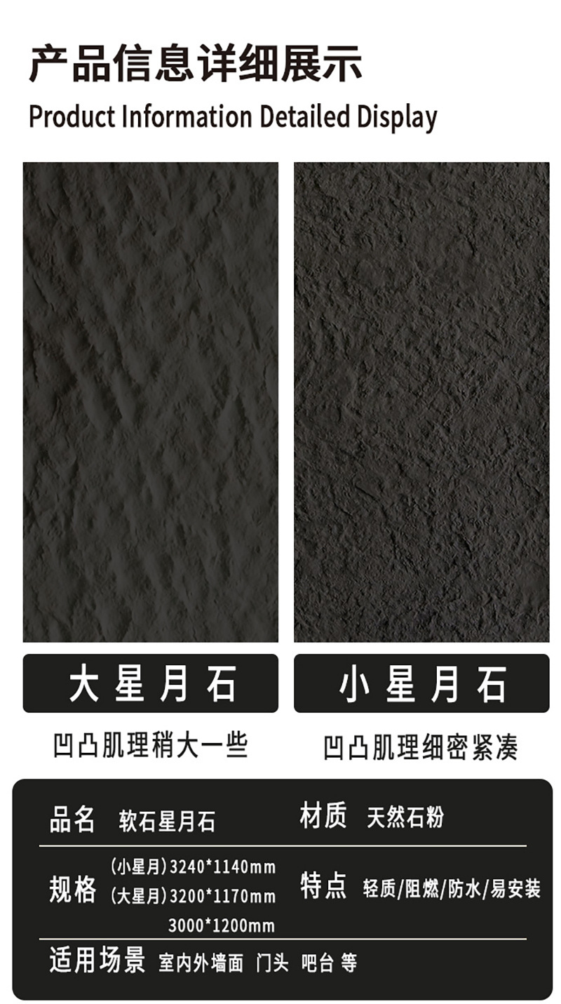 柔らかい星と月の石の壁パネル、土壌スラブ、柔らかい石、柔軟な石、曲げ可能な極薄スレートドアヘッド背景装飾