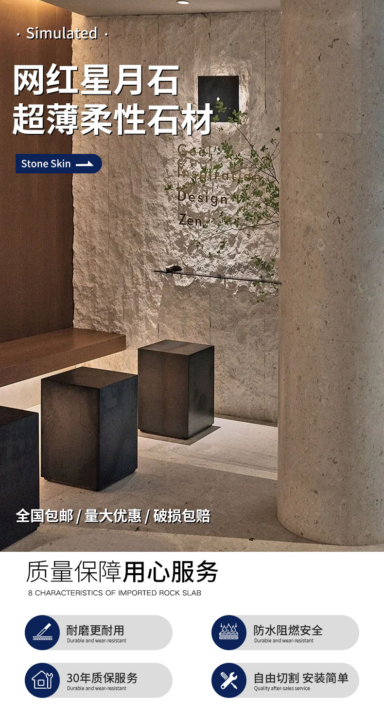 星月石软石板仿真软瓷柔性石材超薄石皮背景墙装饰英安岩夯土板