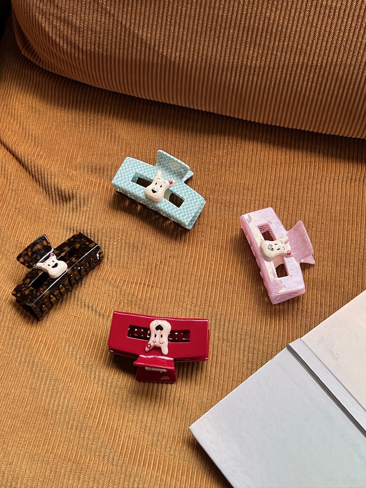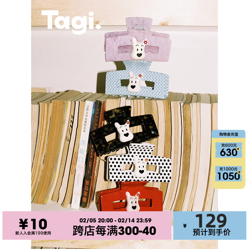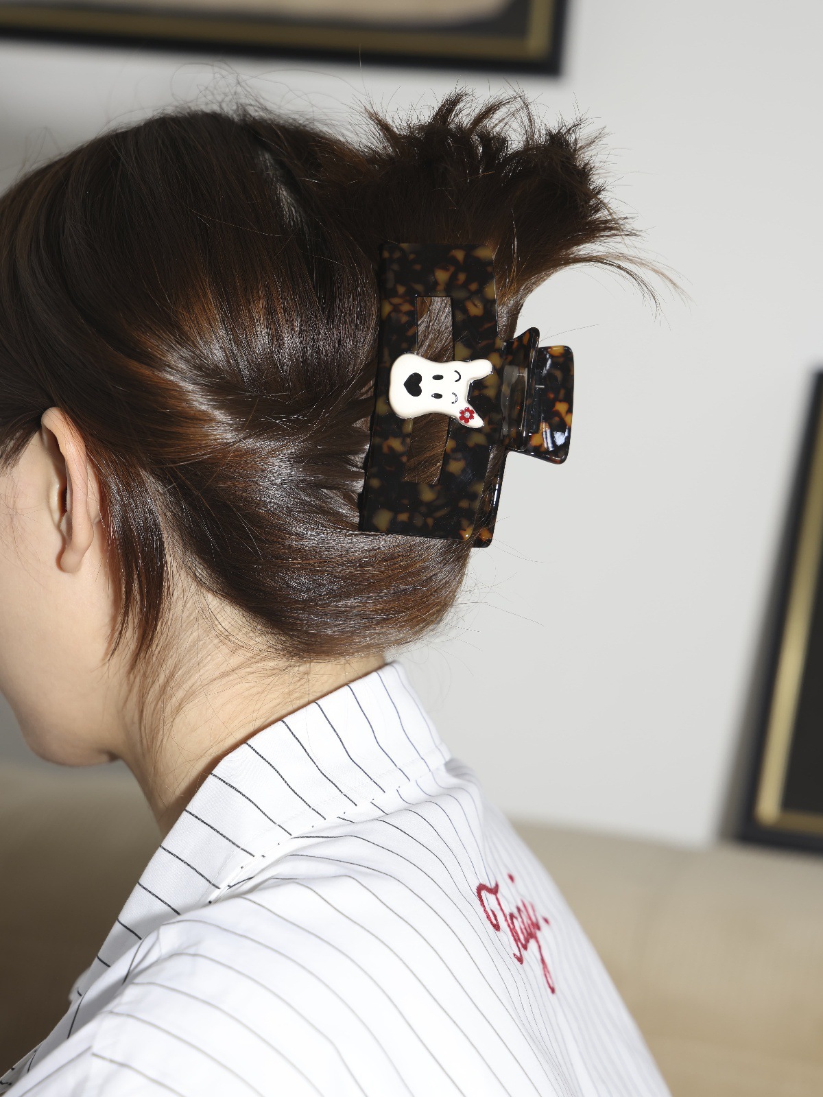 Tagi.《哈哈》小狗方形亚克力镂空抓夹无痕鲨鱼夹可爱发抓