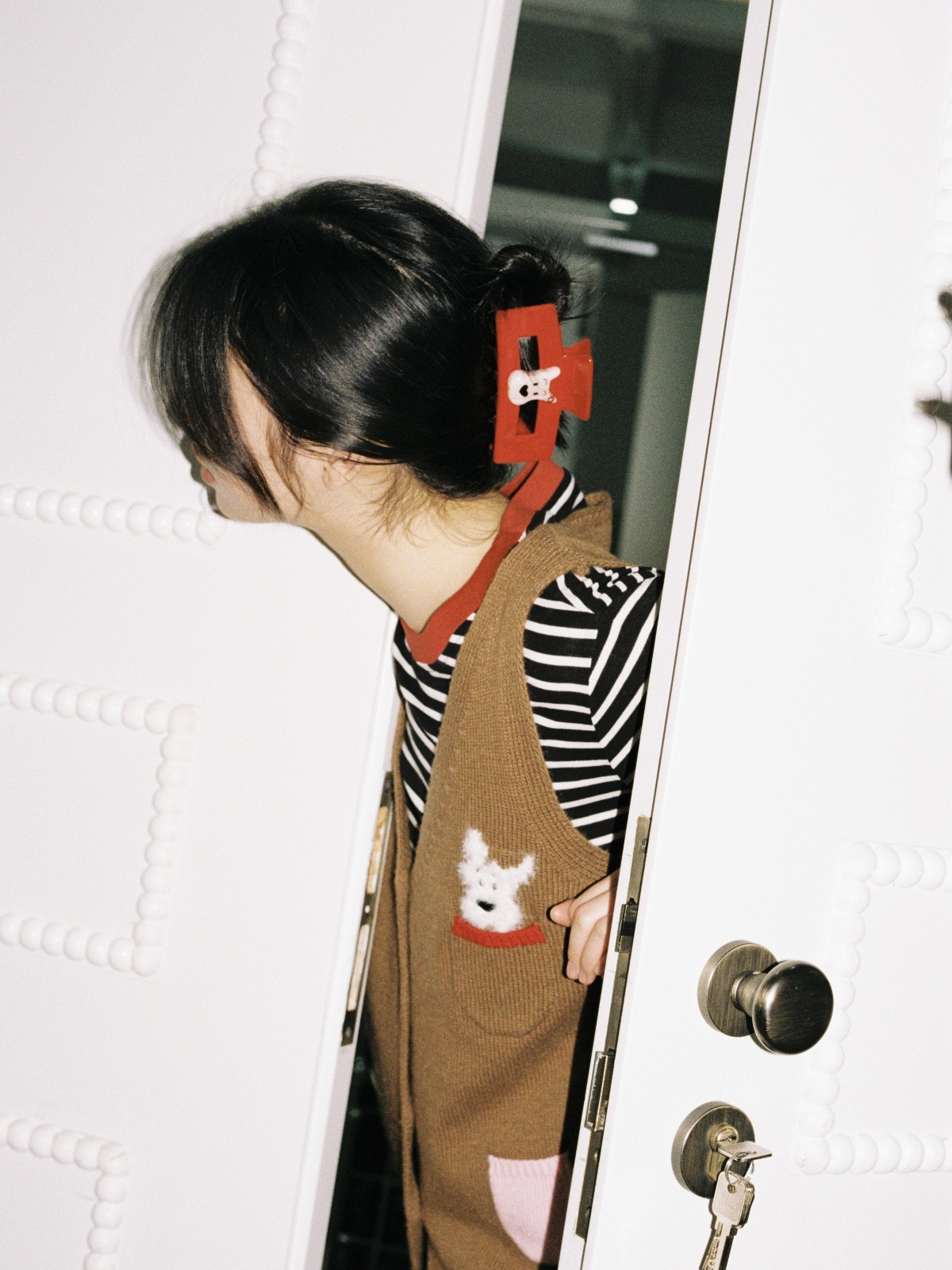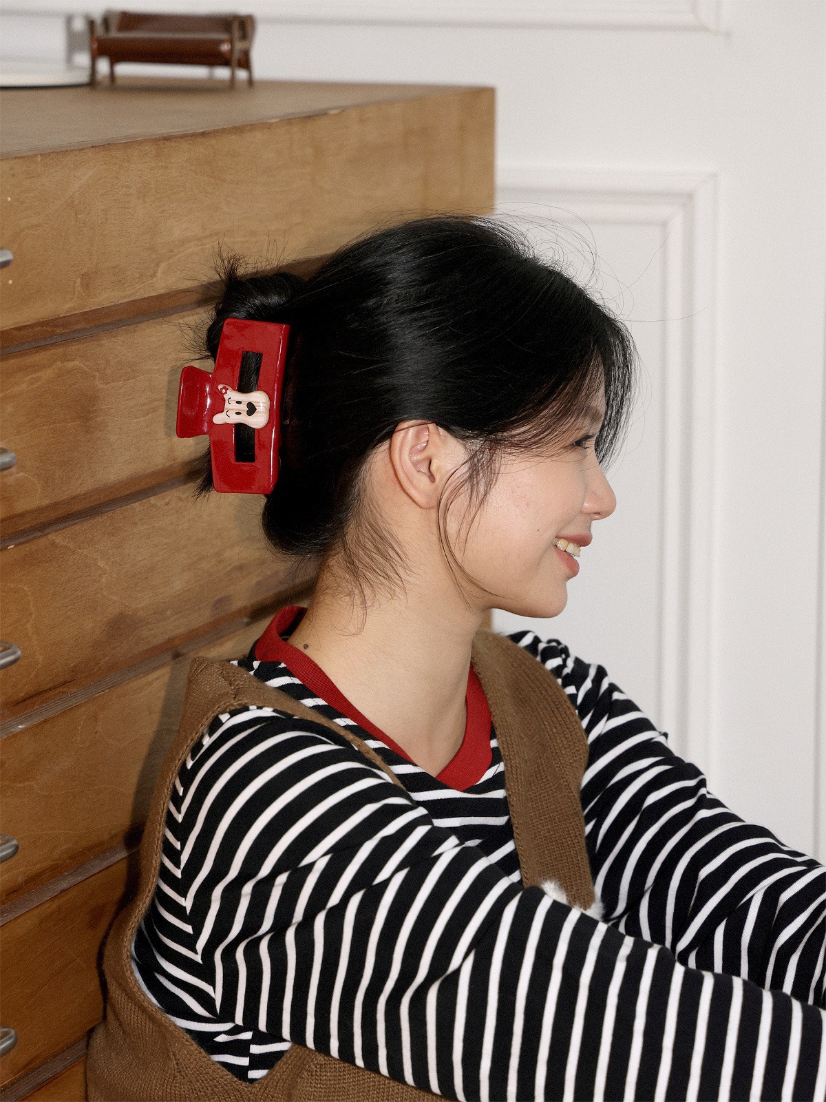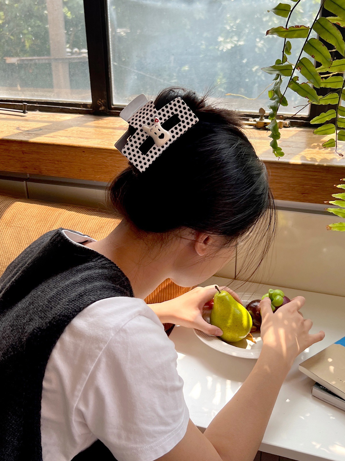 Tagi.《哈哈》小狗方形亚克力镂空抓夹无痕鲨鱼夹可爱发抓