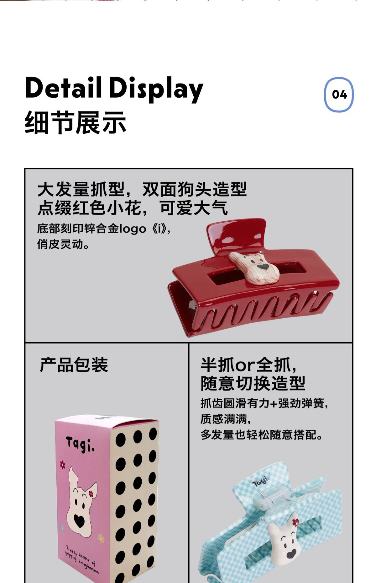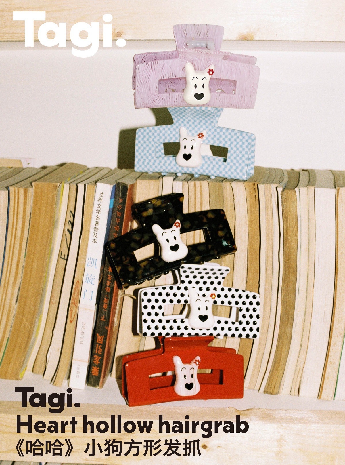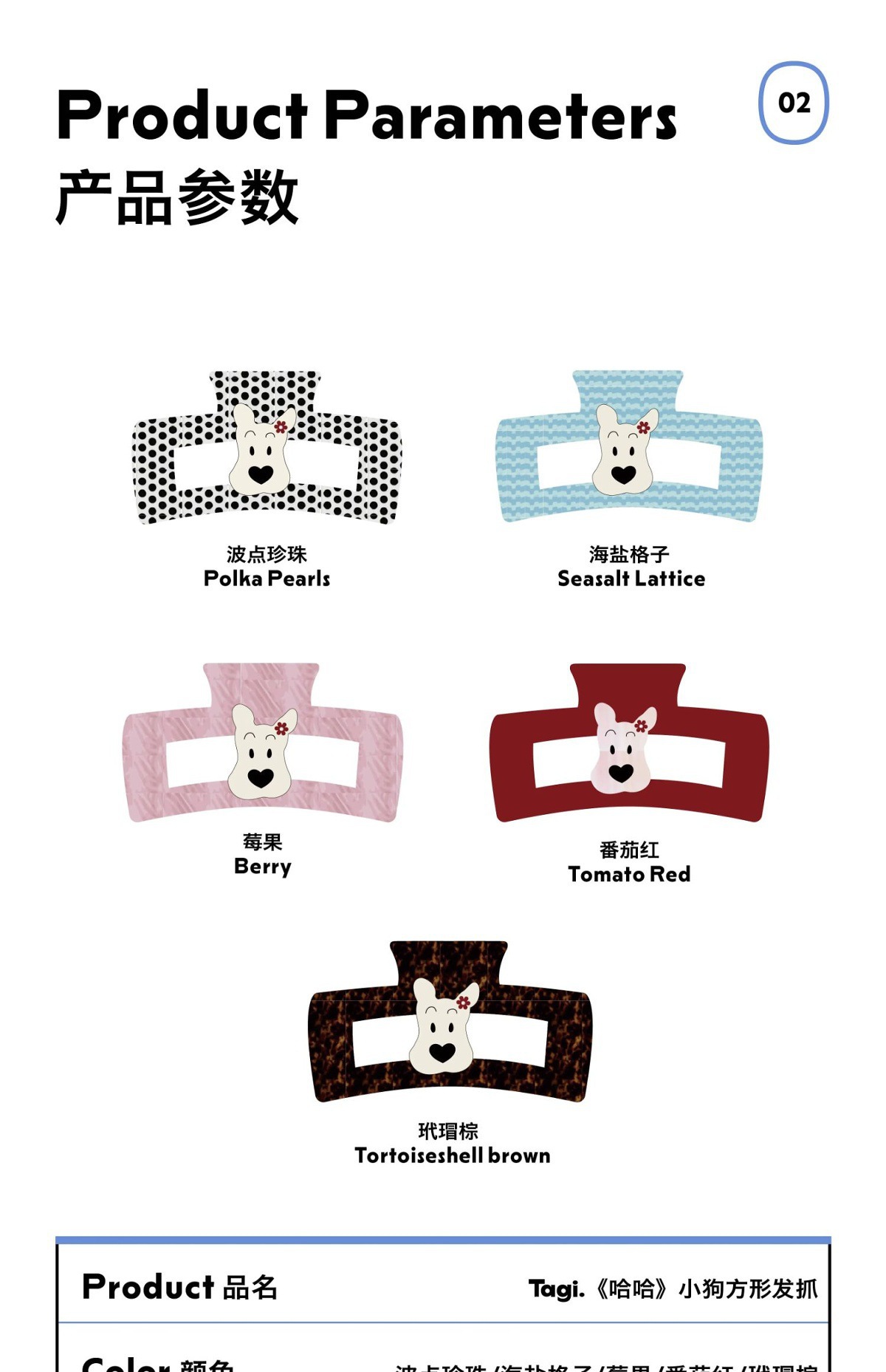 Tagi.《哈哈》小狗方形亚克力镂空抓夹无痕鲨鱼夹可爱发抓带LOGO