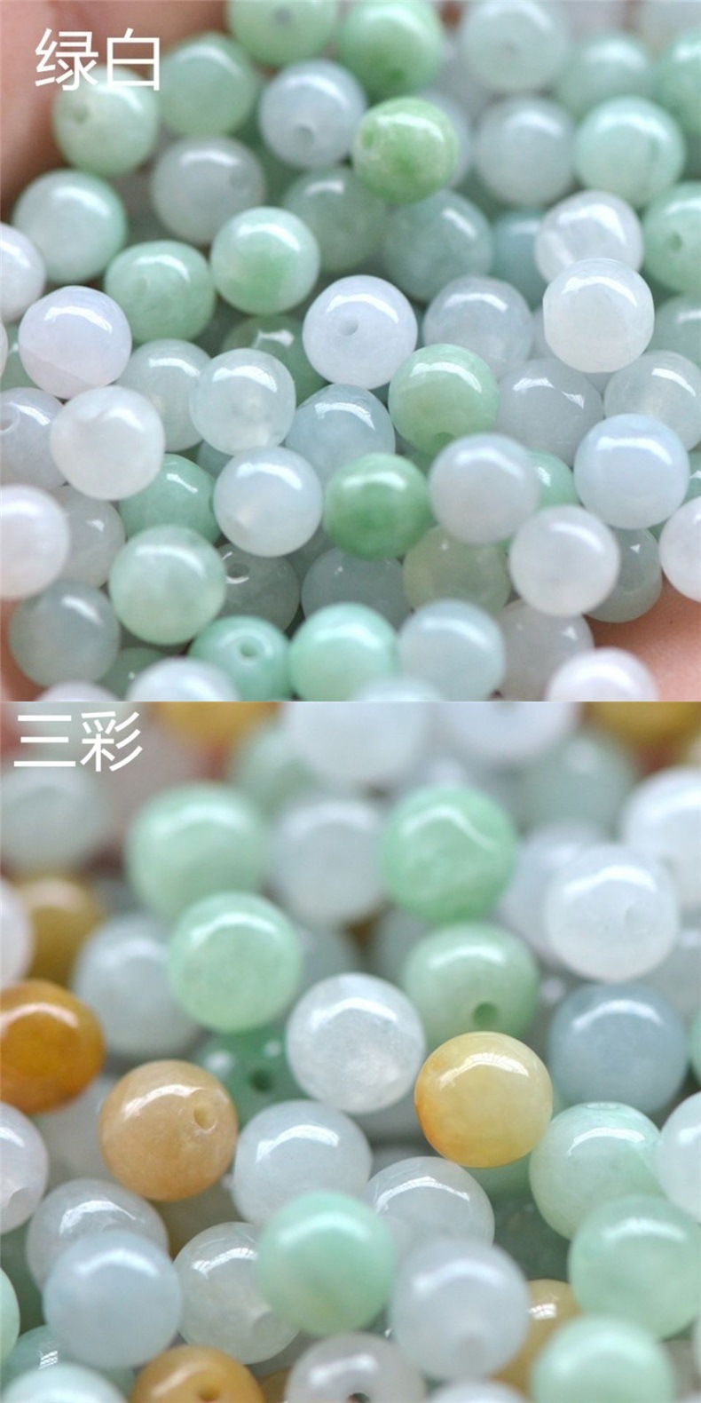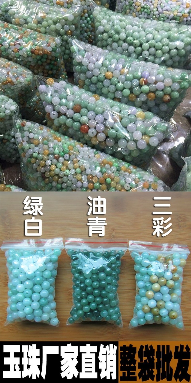 整包出售翡翠散珠子玉珠三彩浅绿白油青圆珠项链手链