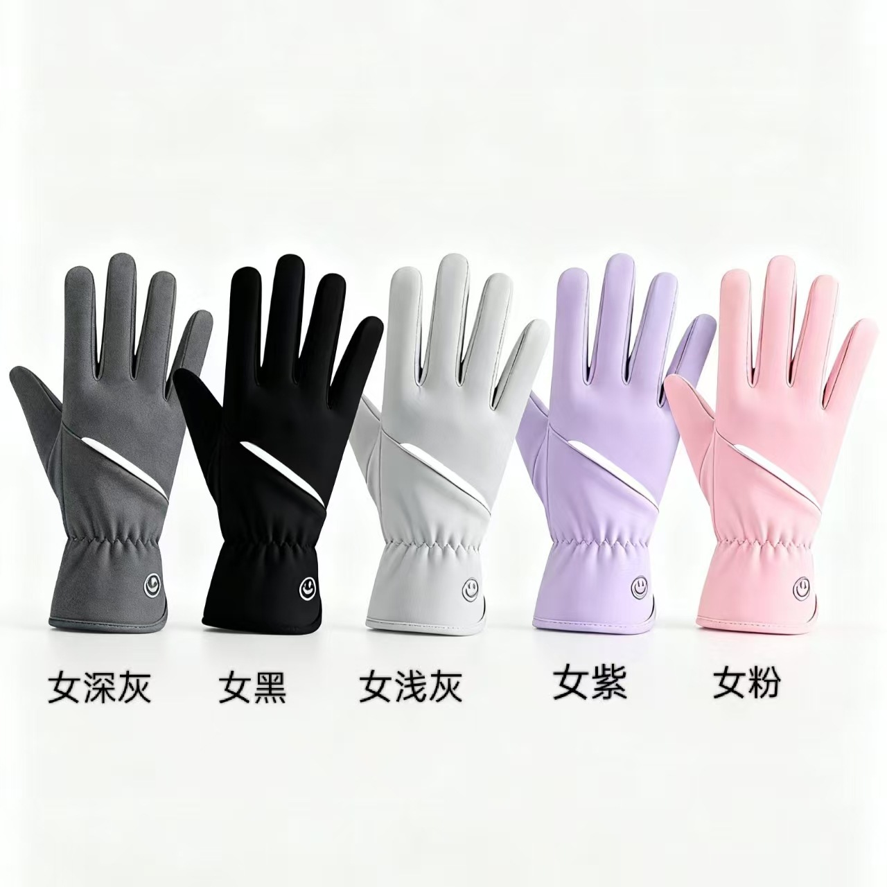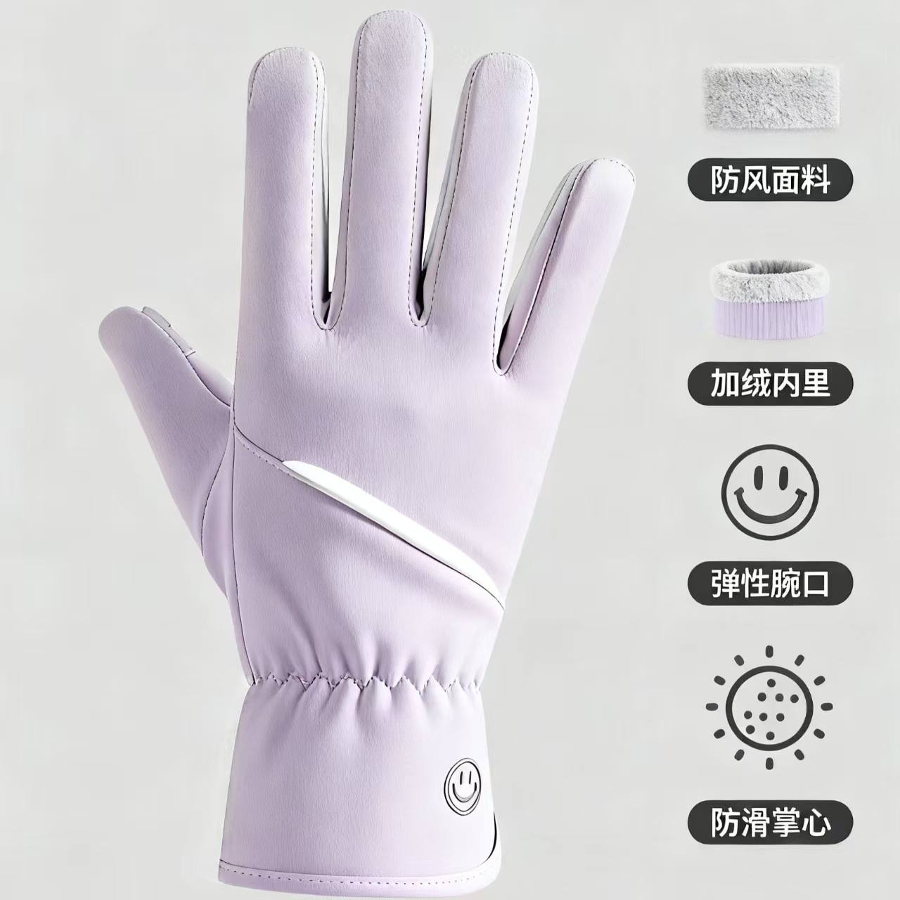 保暖手套加绒加厚防风可触屏冬季骑行电动车运动防寒笑脸白条