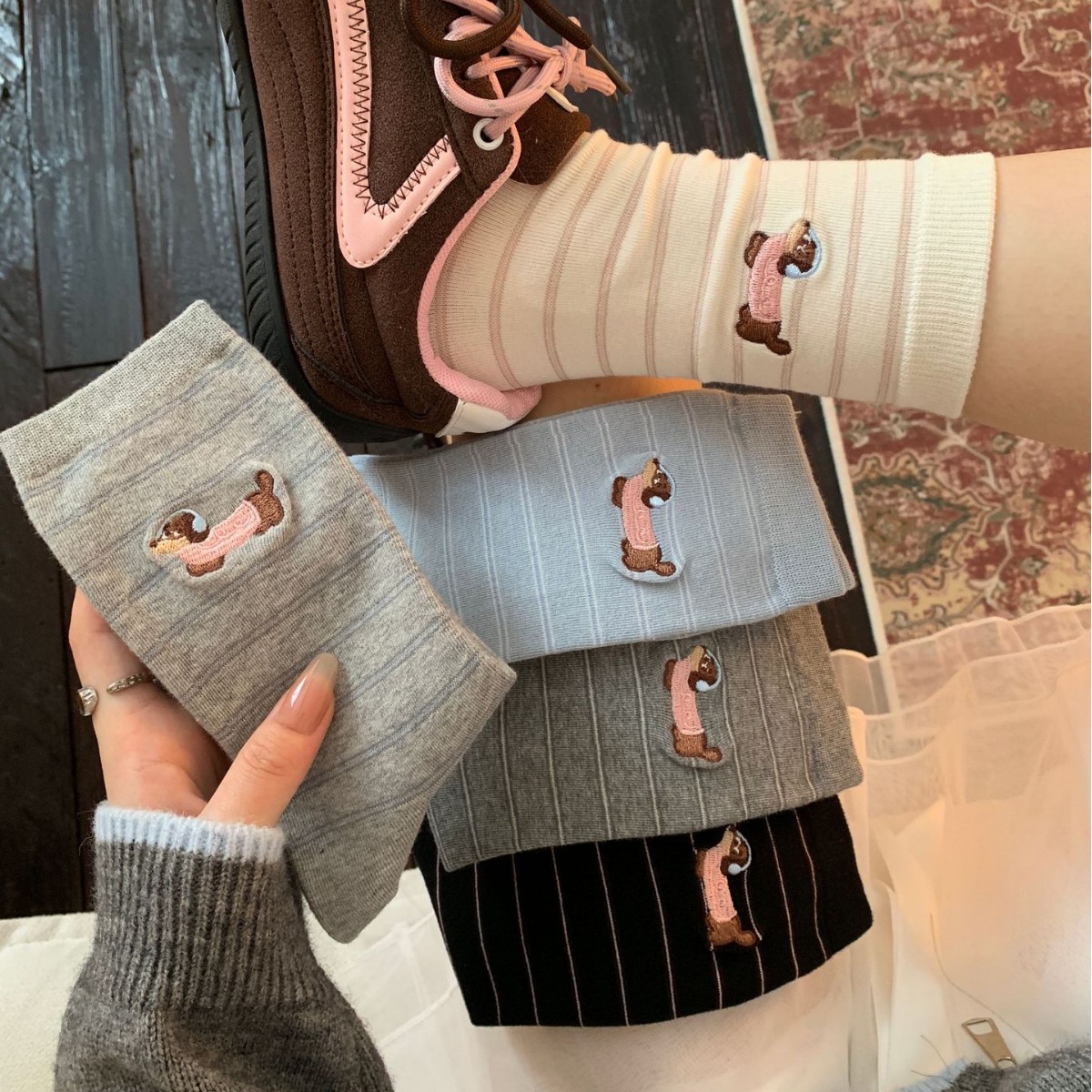 韓国の靴下の女性insソーセージと犬の靴下が可愛いです。