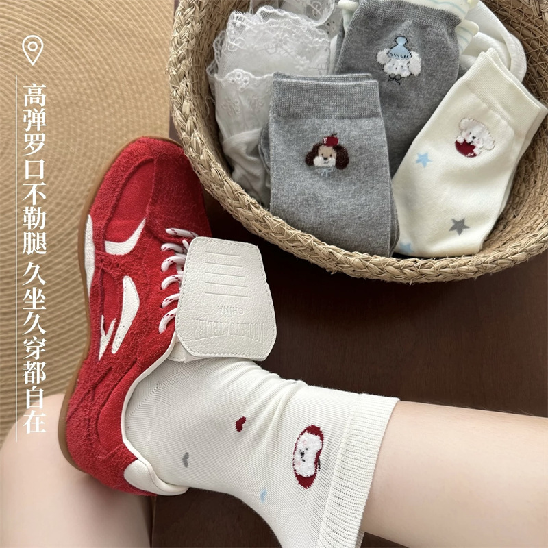 小狗袜子女秋冬棉袜中筒袜ins无骨透气白色可爱卡通学院风堆堆袜