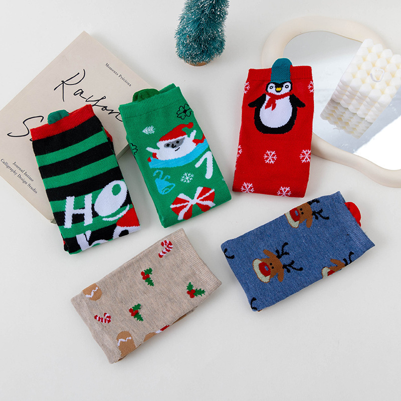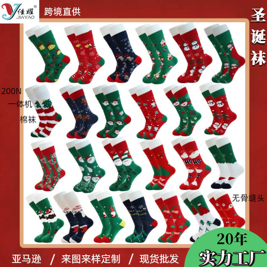 諸暨現貨中筒綿靴下、アマゾンINSトレンド個性派デザイン、サンタクロースホリデーソックス、骨なしクリスマスソックス