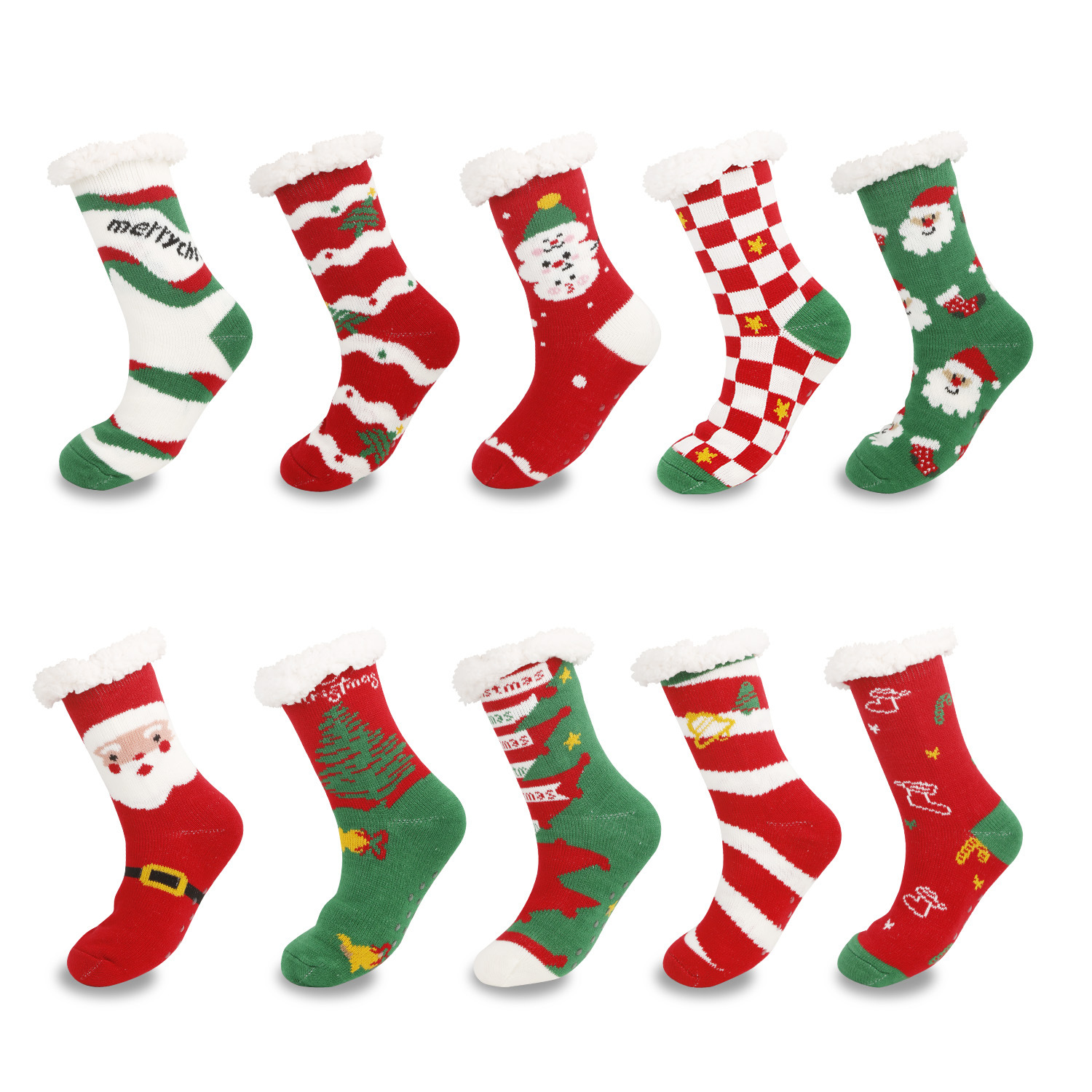 卡通圣诞袜子女秋冬季加厚毛绒蓄热保暖地板袜跨境外贸袜子批发